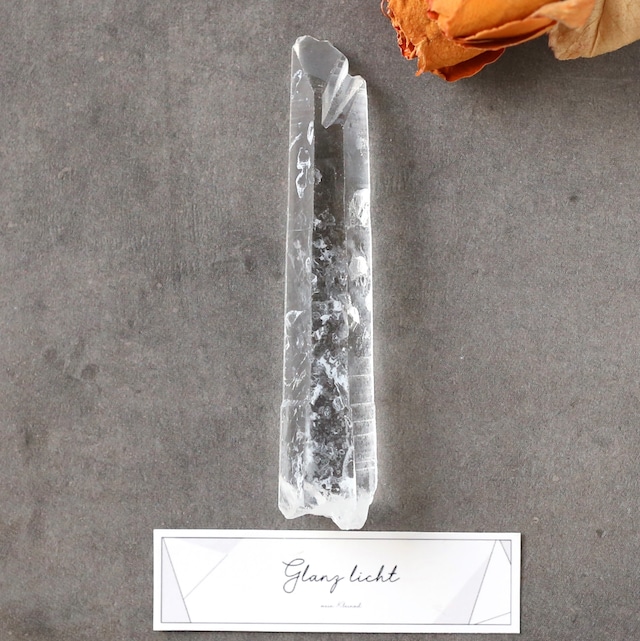 希少なトマスゴンサガ産のゴールデンヒーラーです! 現品1点限り、写真の物がお手元に届きます! しっかりとした色付きながらも透明感が美しいゴールデンヒーラーです 通常、色が濃くなると透明感がなくなってしまいますが、こちらはしっかりとした色付きながらも、透明感がありとても綺麗です! すらりと伸びた結晶の形も綺麗で、クリスタルワークにもお勧めです。 マスタークリスタルは、角に少しダメージがありますがチャネリング、平面的なレコードキーパー、ストレーションがついています♪ ・チャネリング メインファセットが七角形で、その真裏に三角形のファセットを持つ水晶 高次元の世界と繋がり、コミュニケーションを取る手助けをしてくれると言われています! ・レコードキーパー 表面に現れる立体的な三角形の形の模様の事で 持ち主の心・体・感情が一体化した時に、高次元にアクセスできるようになり 地球上に存在する魂の起源についての情報や知識、そして未来さらにはこの世界の真理を見せてくれるという効果があるとされています。 古代アトランティスやレムリアの情報・叡智と繋がるとも言われています ・ストレーション 他の結晶が外れた剥離痕 ストレスや心の傷を癒す力がとても強いとされており 剥離痕を指でなぞるとストレスや過去のトラウマを癒してくれると言われています こちらの鉱物には、オリジナルラベルが一枚付きます! アンティークなデザインなので、石と一緒に飾っても可愛いです♪ 世界的にも美しい水晶が採取されることで有名なブラジルのトマスゴンサガ産のゴールデンヒーラーは産出量が少なくヒーリングの分野においてとても人気です。 浄化&チャージが同時にできると言われており ハイヤーセルフにつながりやすく、瞑想や精神を強化するのにも良い石といわれています。 強烈な波動を持っているので 周囲の邪.気に敏感な方も、この石の波動で跳ね返すと言われ魔.除け効果にも良いです。 トマスゴンサガ産とは ブラジル産の中でも最高級の輝きを持った水晶と言われており 最近では産出量が激減してしまい、仕入れることも難しく幻の水晶となりつつあります。 この産地のものであっても、いわゆるグレードの低いものは、単に「ブラジル産」として市場流通し トマスゴンサガ産特有の美しさ、エッジの切れ、艶 照りなどの際立った美品のみ「トマスゴンサガ産」というブランドとして扱われております。 サイズ 縦 約69mm 横 約17mm 厚み 約14mm 30g 天然石のため、インクルージョン(内包物)や、クラック(ヒビ、キズ)などが入っている場合があります。 現物の色に近い撮影を心掛けておりますが、光の当たり方などで色が違って見えることがあります。ブラウザにより、画像の色に違いがある場合もあります。 石の細部が見えるように、拡大してトリミングしております。 商品サイズを必ずご確認ください。 #天然石 #ゴールデンヒーラー #ヒーリング #トマスゴンサガ産 #希少原石 #クォーツ #ポイントクォーツ #レコードキーパー #お守り#水晶 #原石 #鉱物