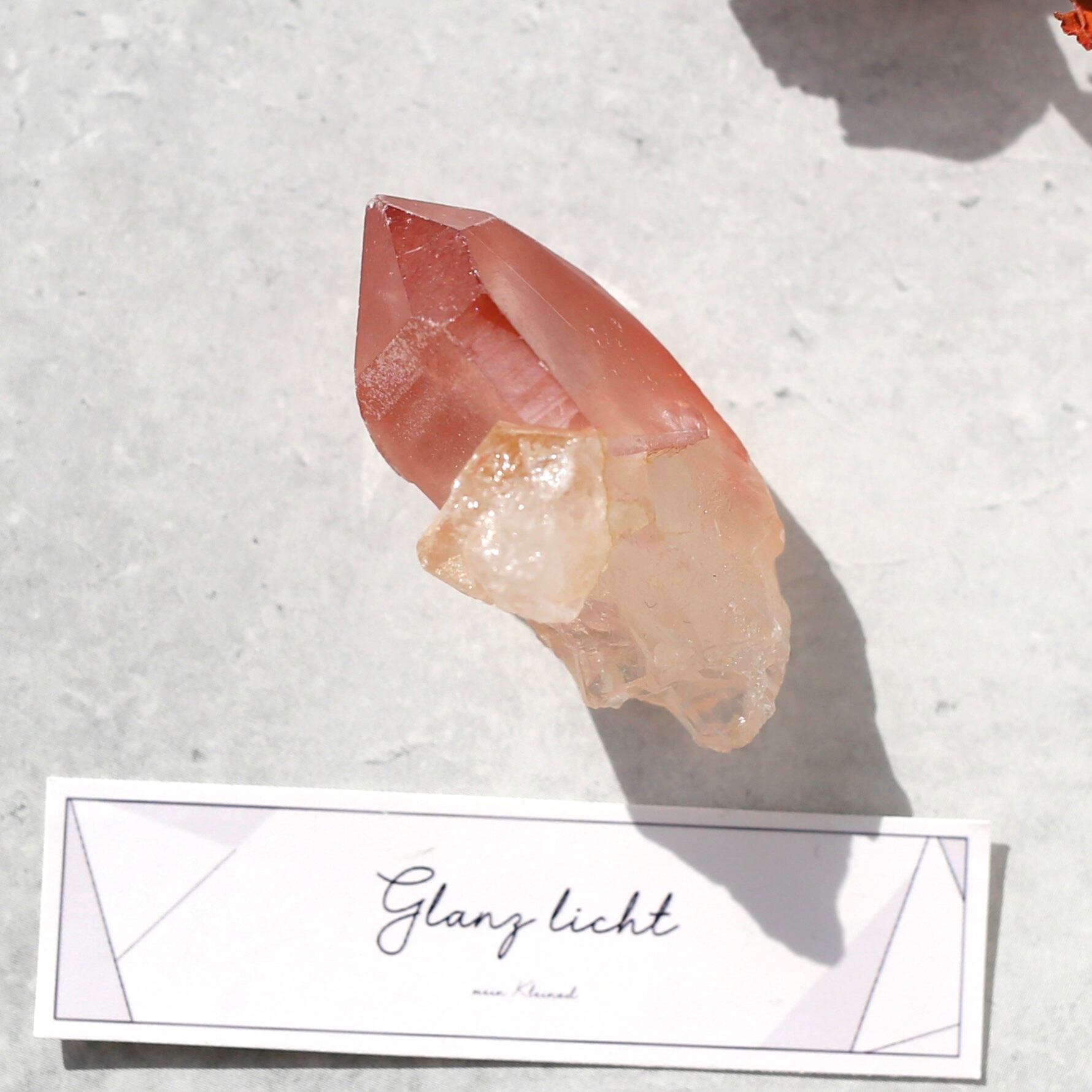 とても濃い発色のディープピンクレムリアンシードに横から別の結晶がしっかりと貫入しています!