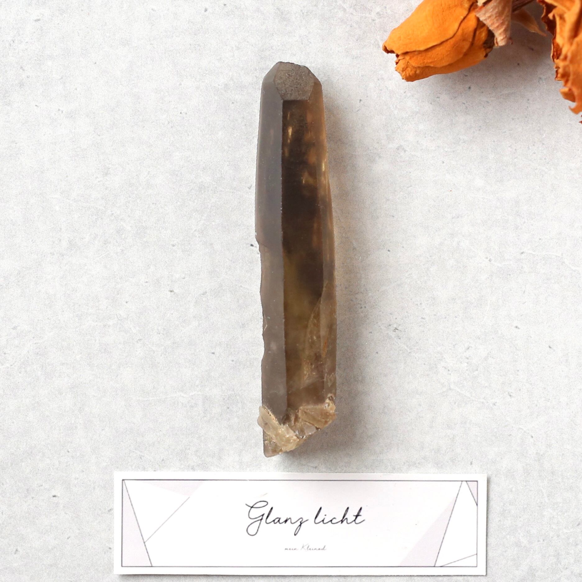茶水晶・煙水晶とも呼ばれ、アルミニウムを微量に含んだ水晶が、自然の放射線の影響で変色したもので、光が透き通らないものはモリオン(黒水晶)となります