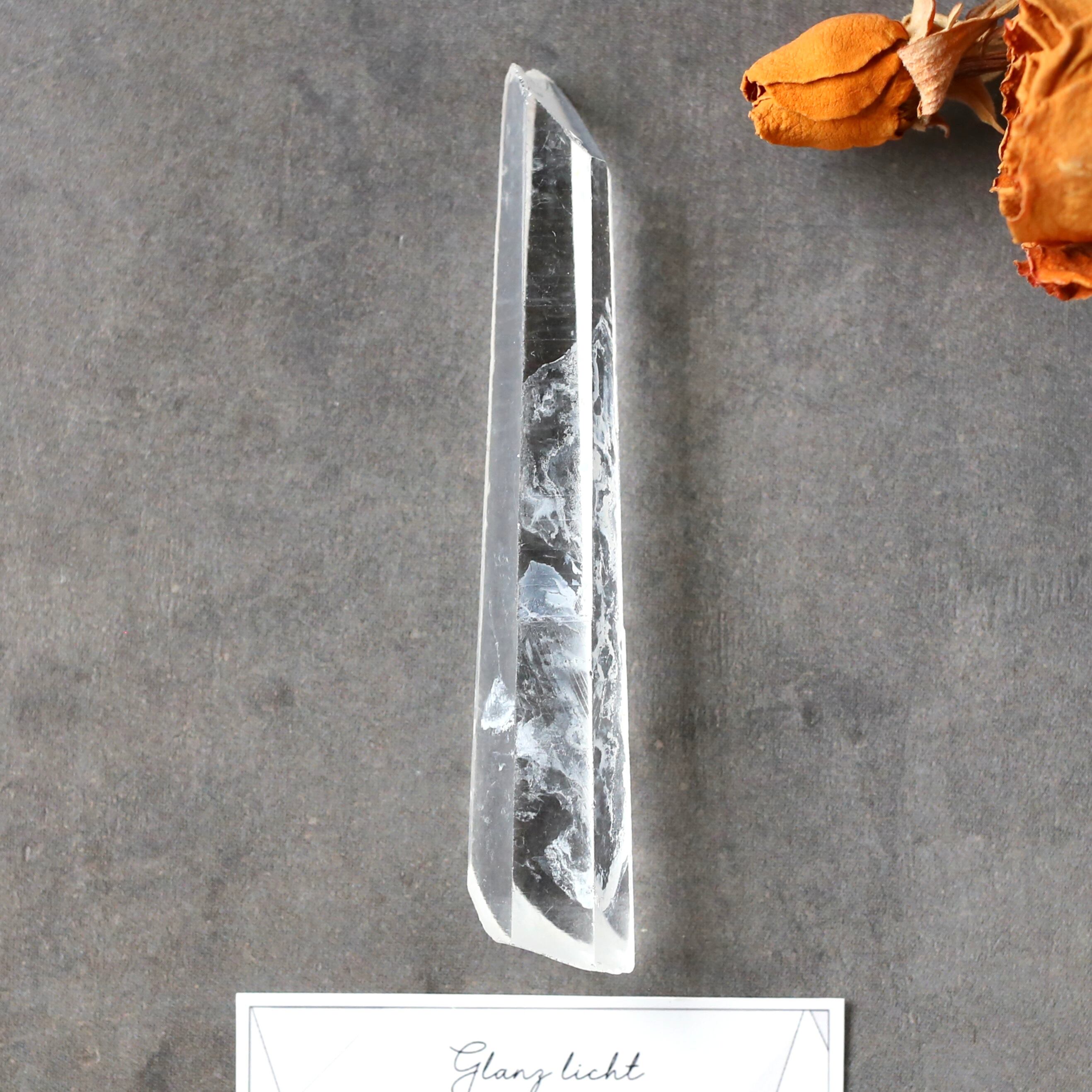 内包物やクラックのない透き通った水晶にまるで龍神のような白い模様が入っているシンギングクォーツです