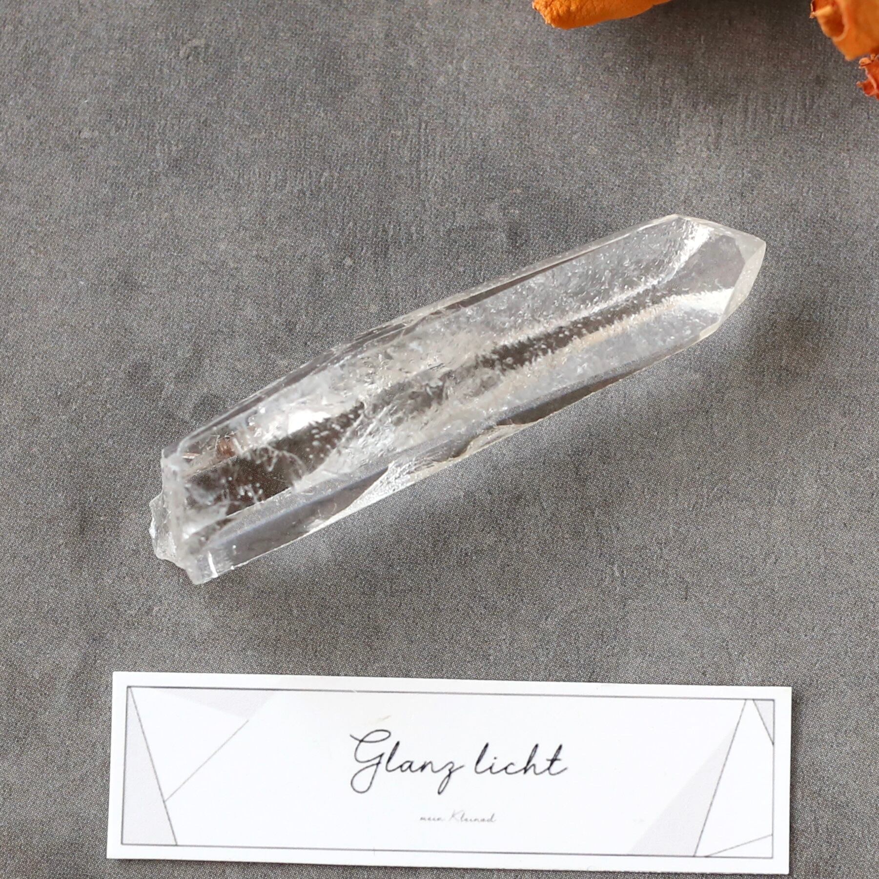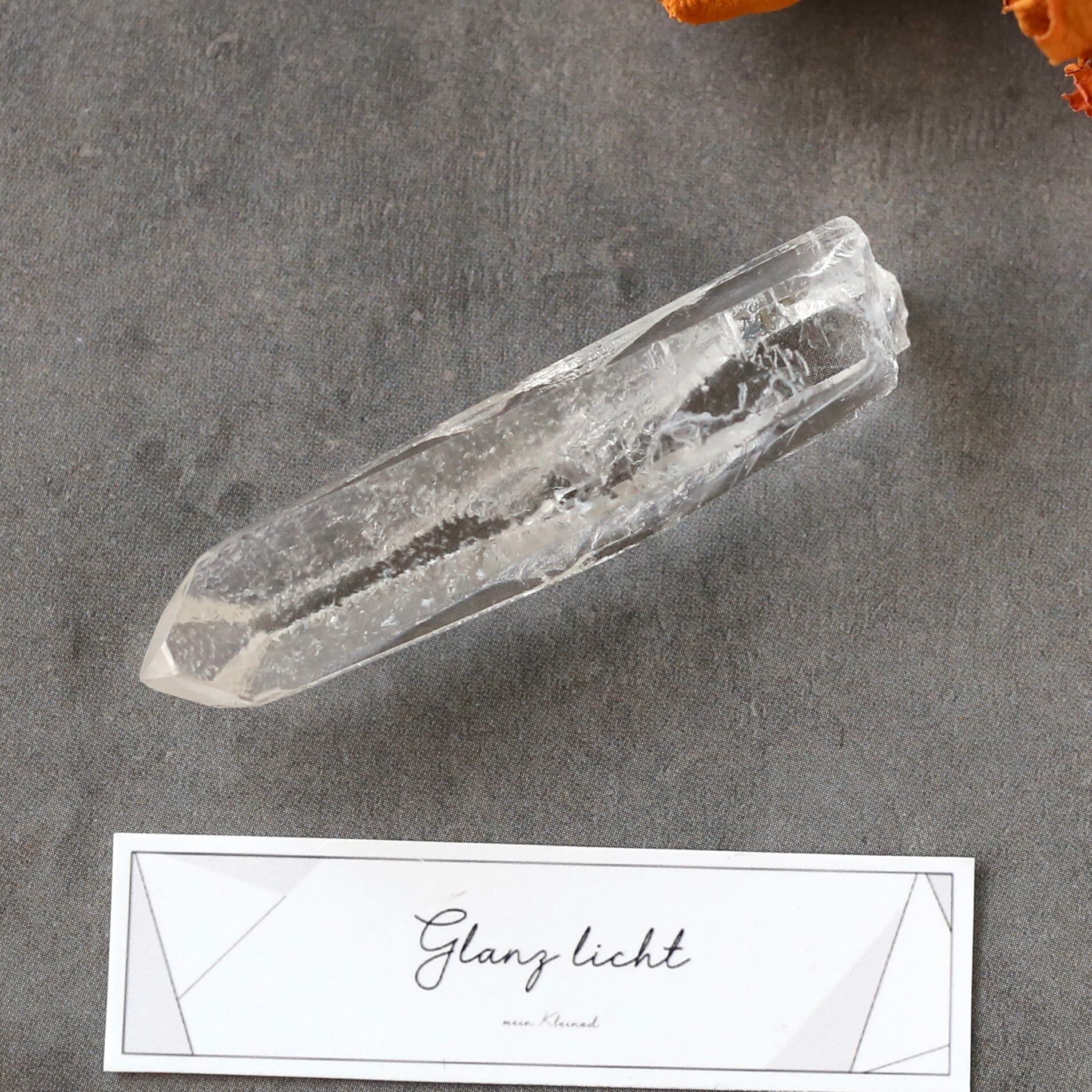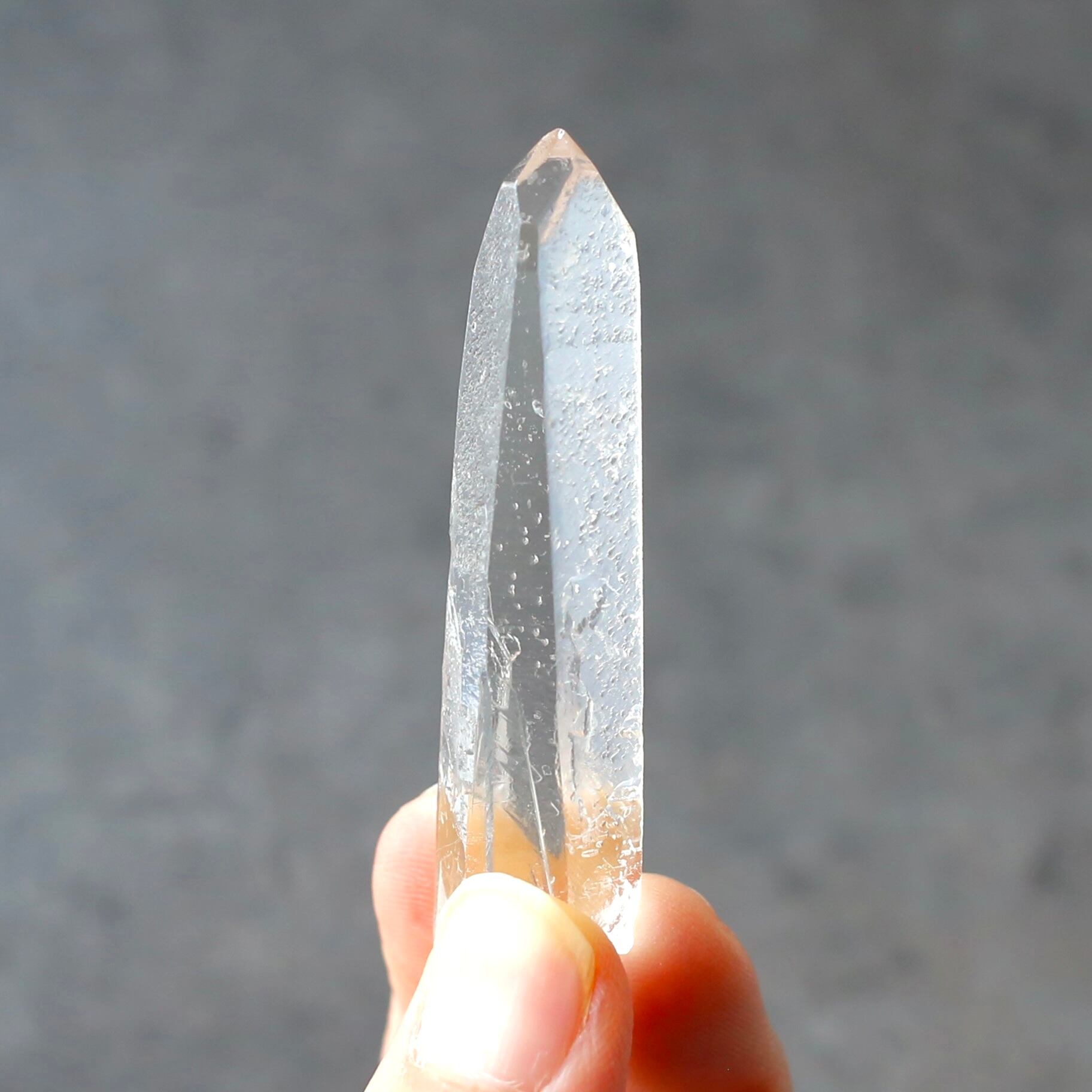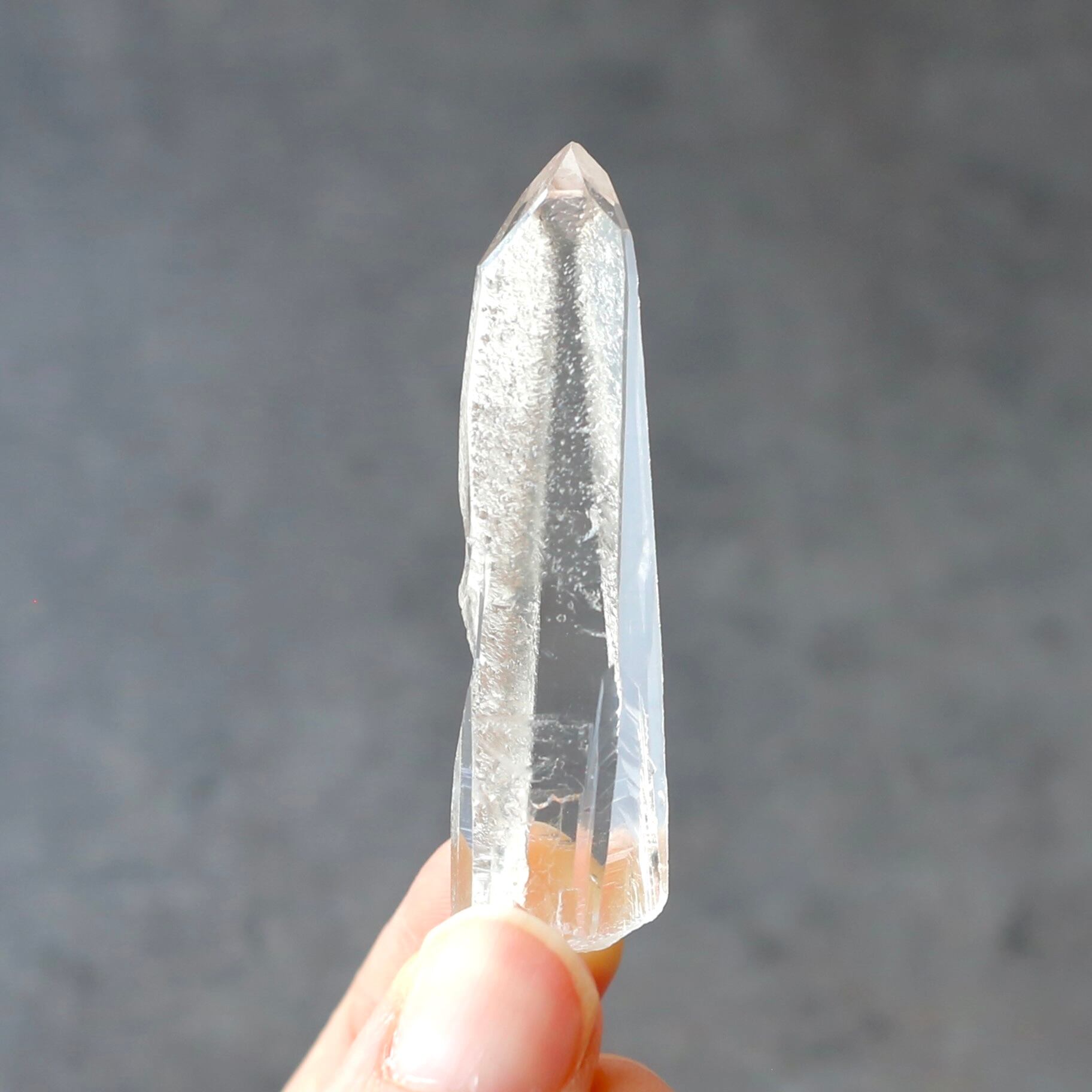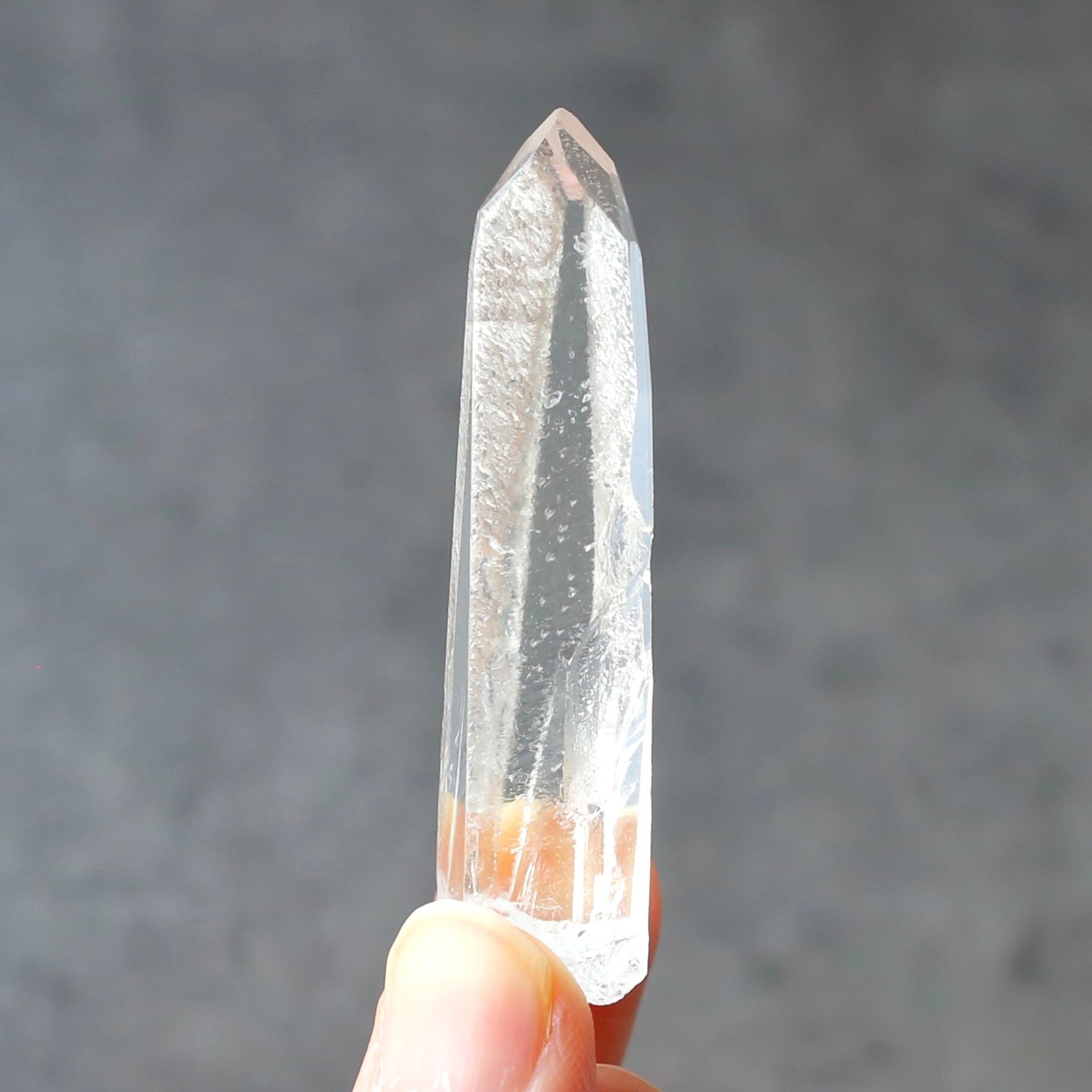 すらりと伸びた形の結晶に、一面ごとにヴィジョンクォーツの特徴とされるスターブラリーが刻まれています