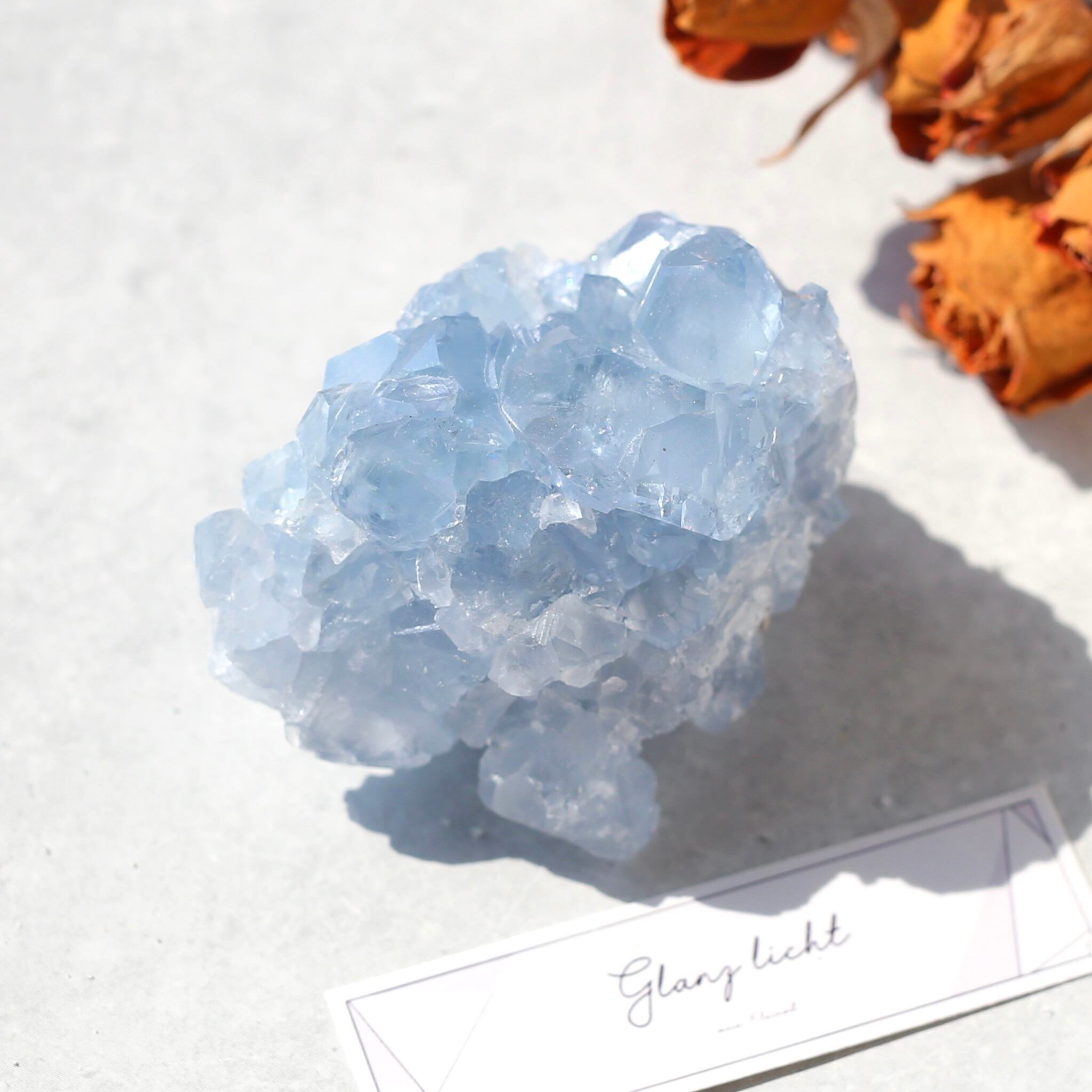 いろんな角度から楽しめるセレスタイトミニクラスターです♪