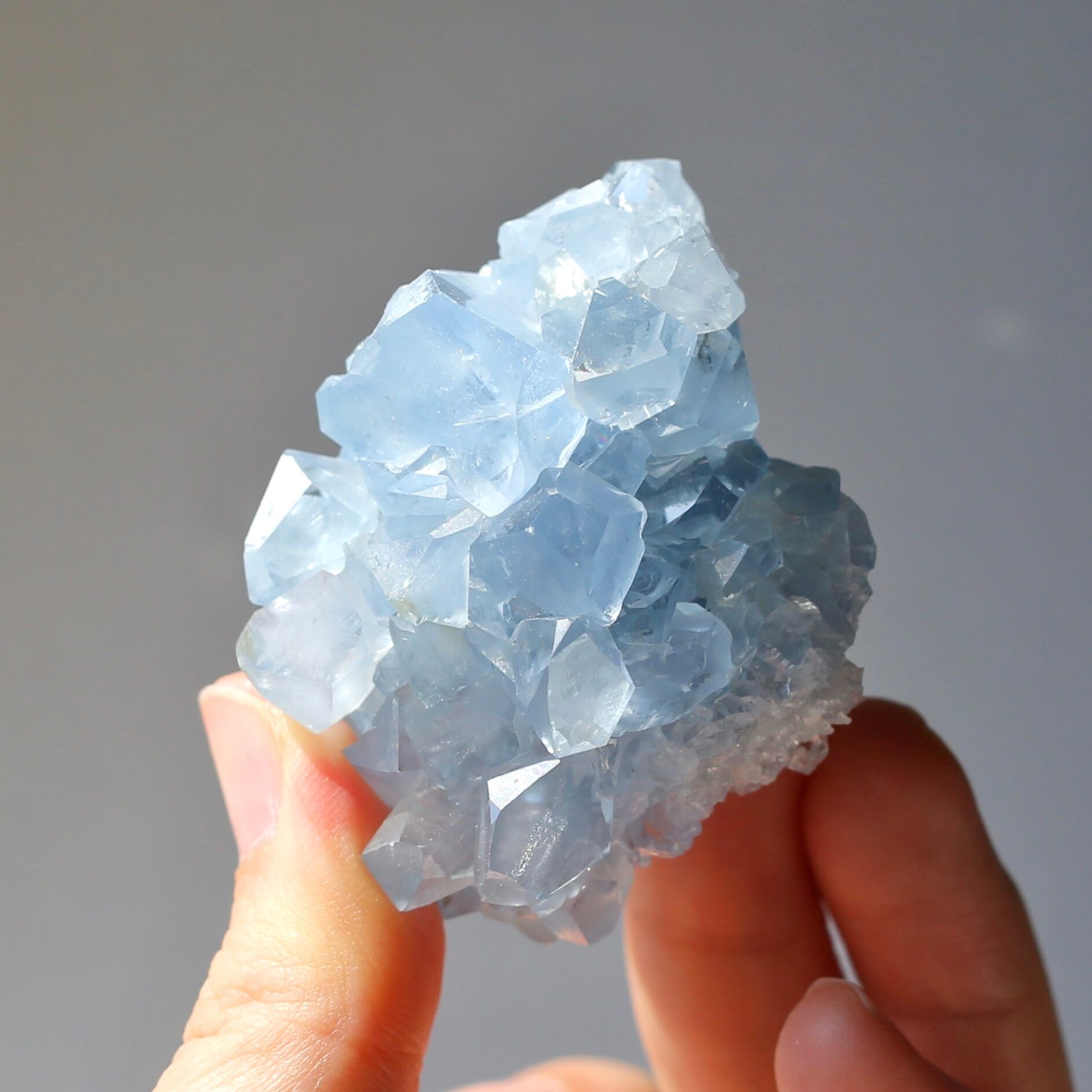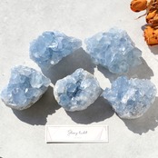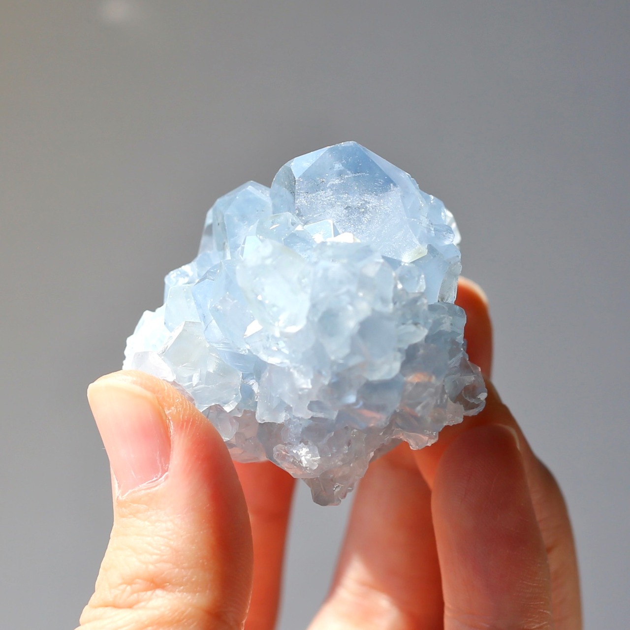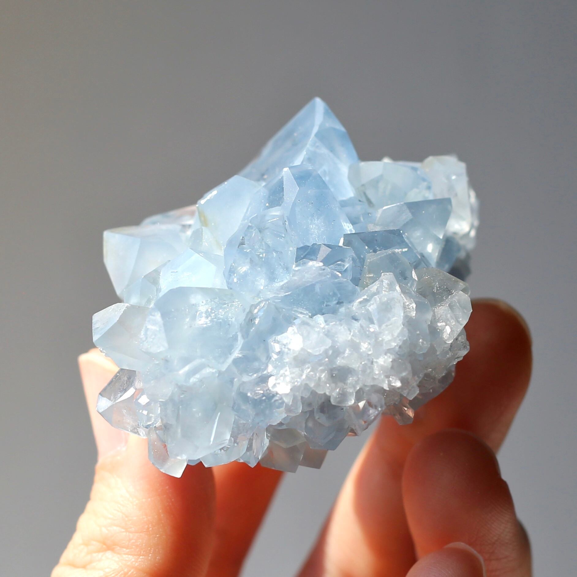 透明感のある結晶がごろごろとついているセレスタイトのミニクラスターです