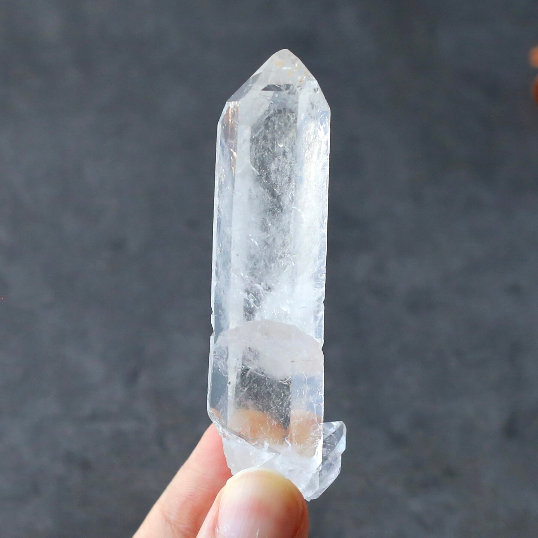 すらりと伸びた結晶の根元に、小さな結晶がくっついている可愛いポイントクォーツです
