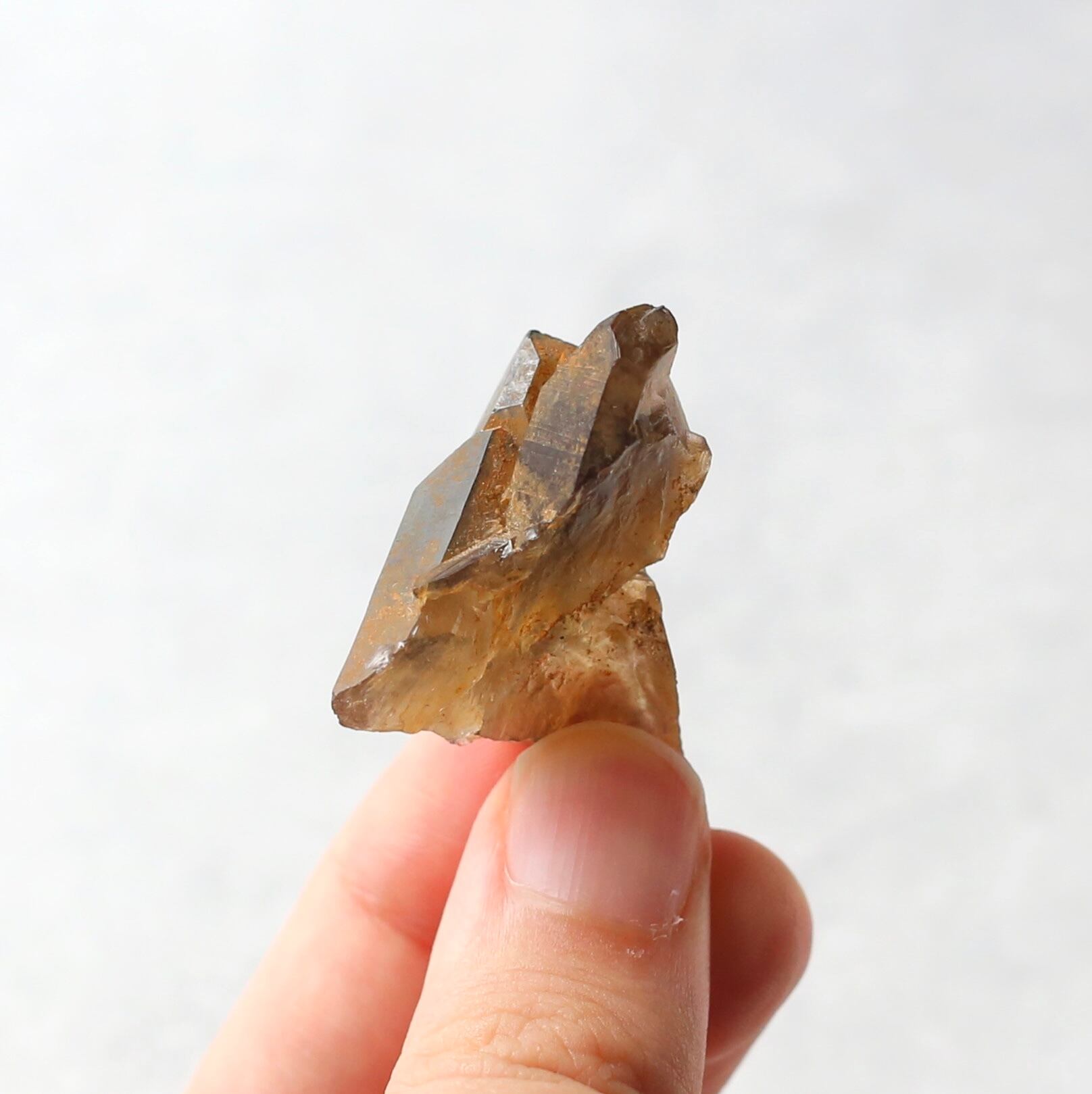 一番下の結晶や側面には茶色の付着物がついていますが、結晶は透明感もあり、スモーキークォーツならではの内部まで色付いた結晶を楽しめます♪