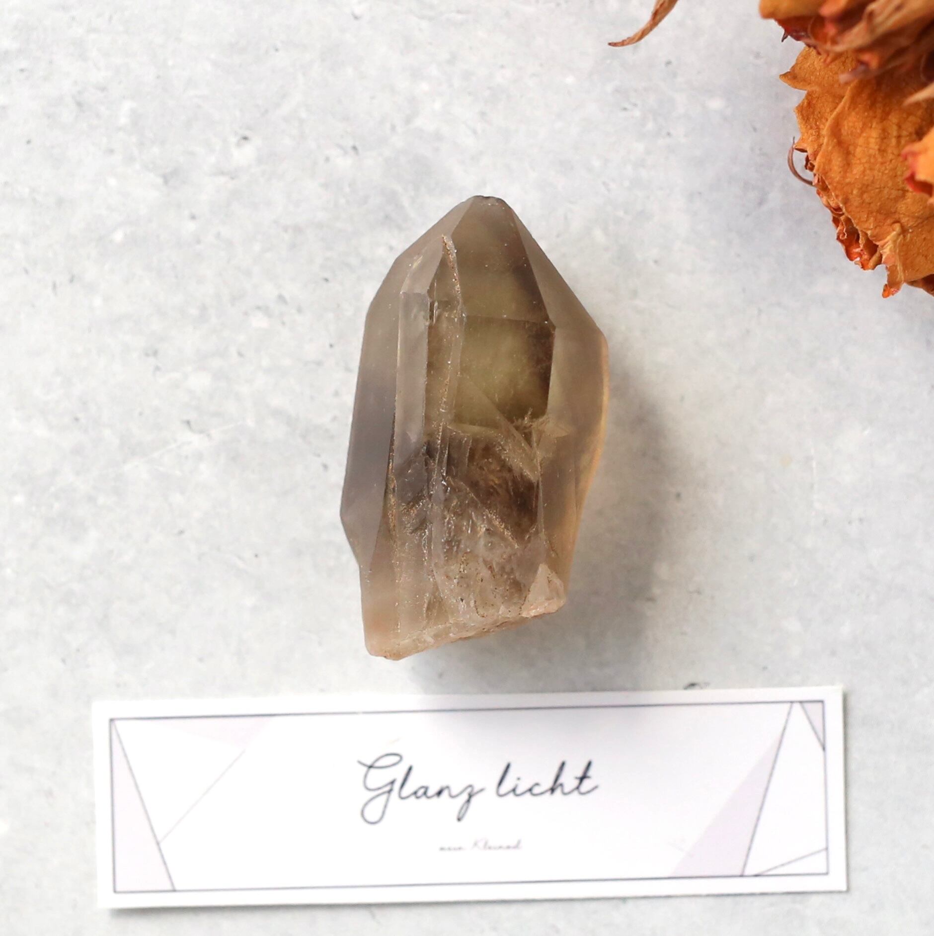 表面がすりガラスのようになっていて、マットな印象ですが、結晶自体は透明感があるので中の煙のような模様が楽しめます♪