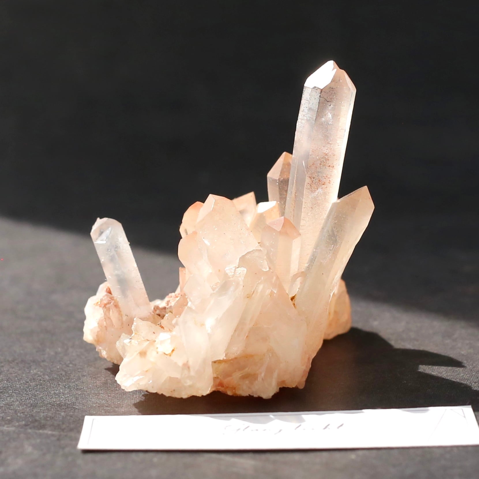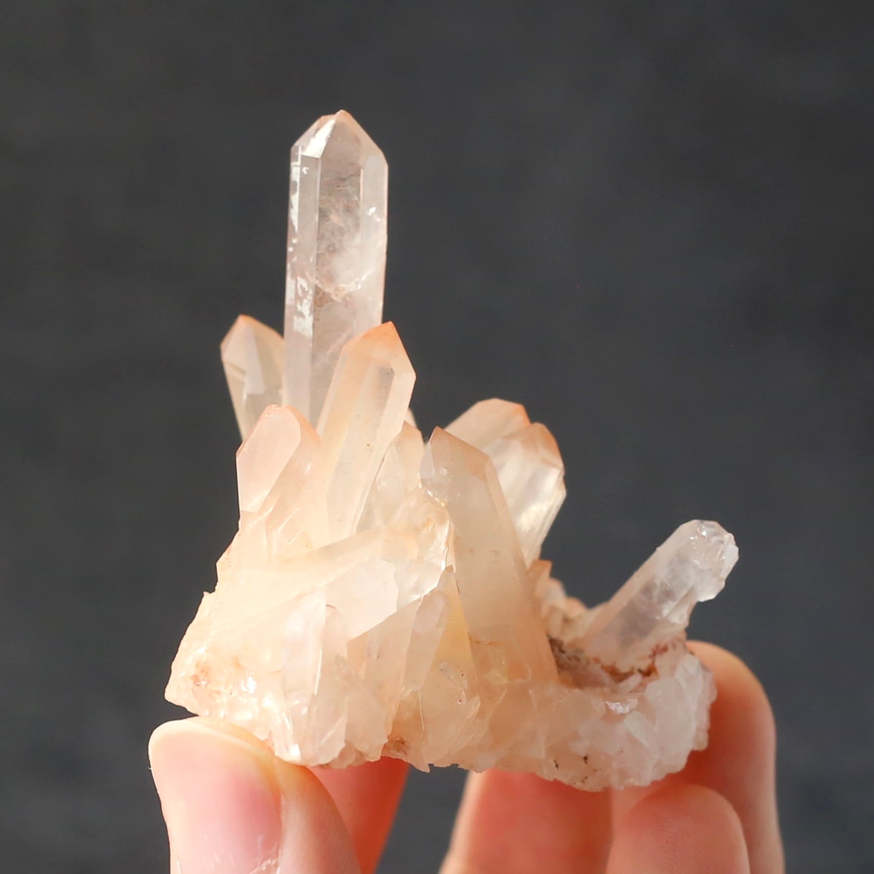 可愛らしいピンクに色付いた個性的なクォーツクラスター達です。