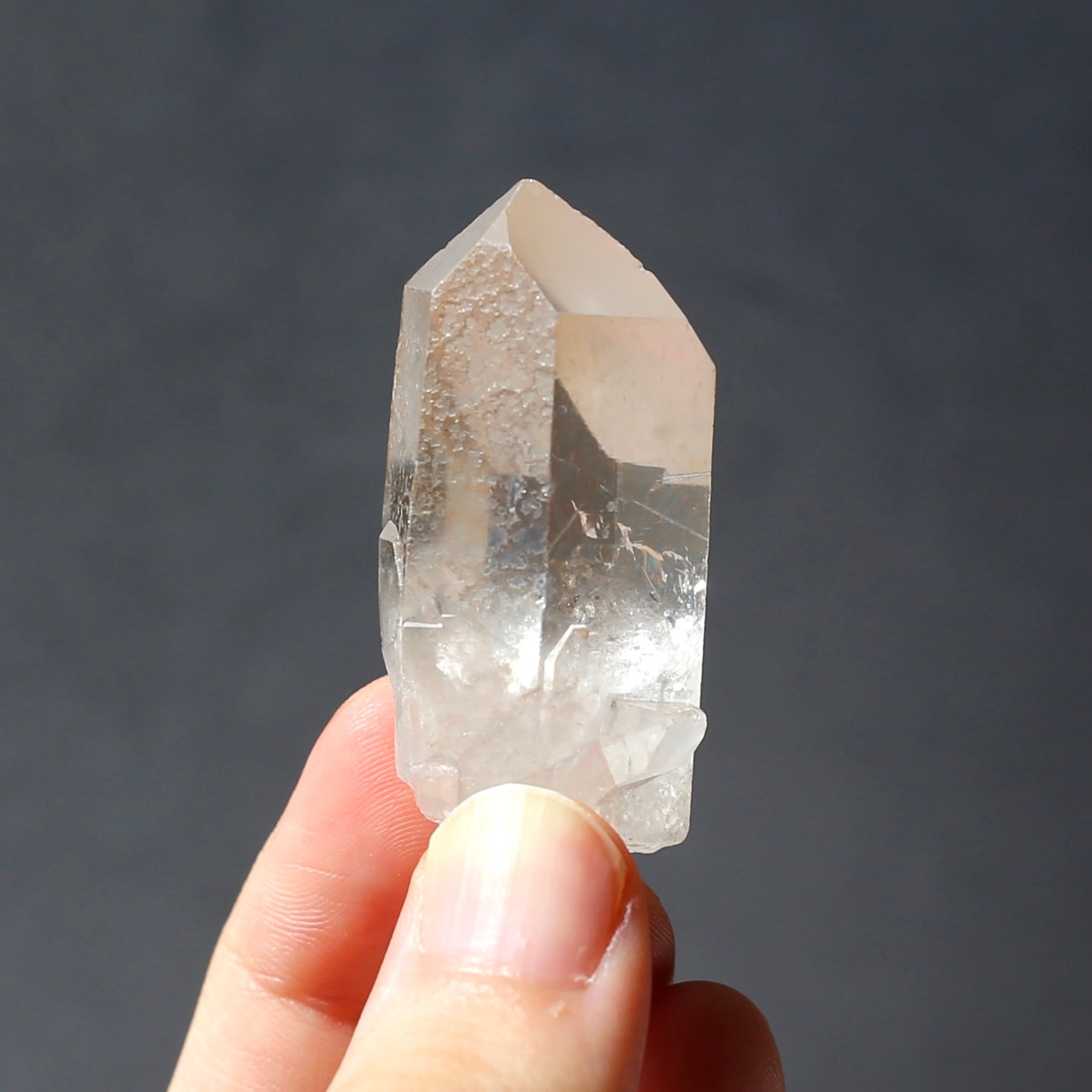 メインファセットが七角形で、その真裏に三角形のファセットを持つ水晶