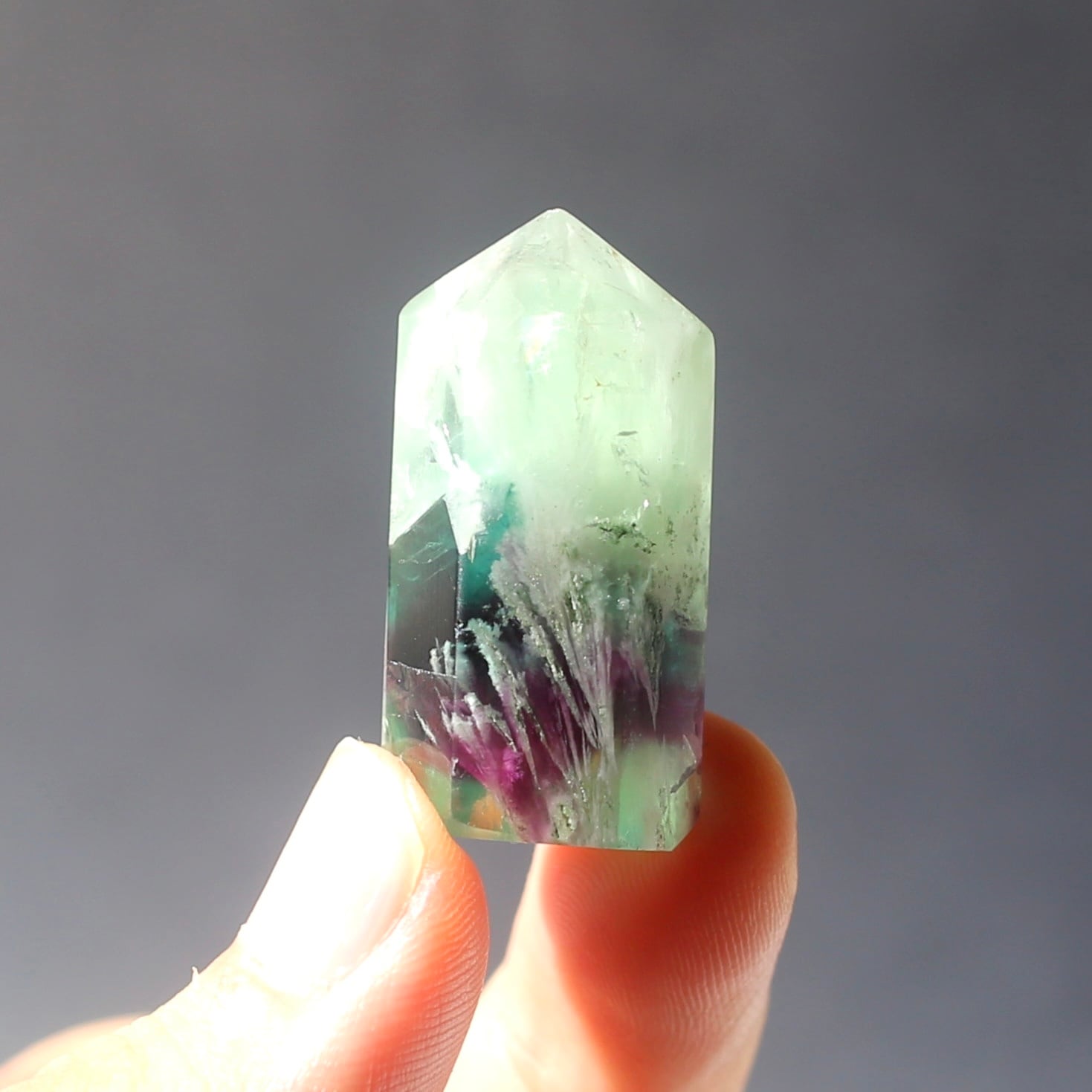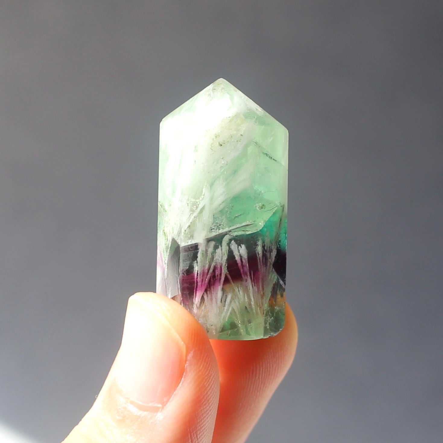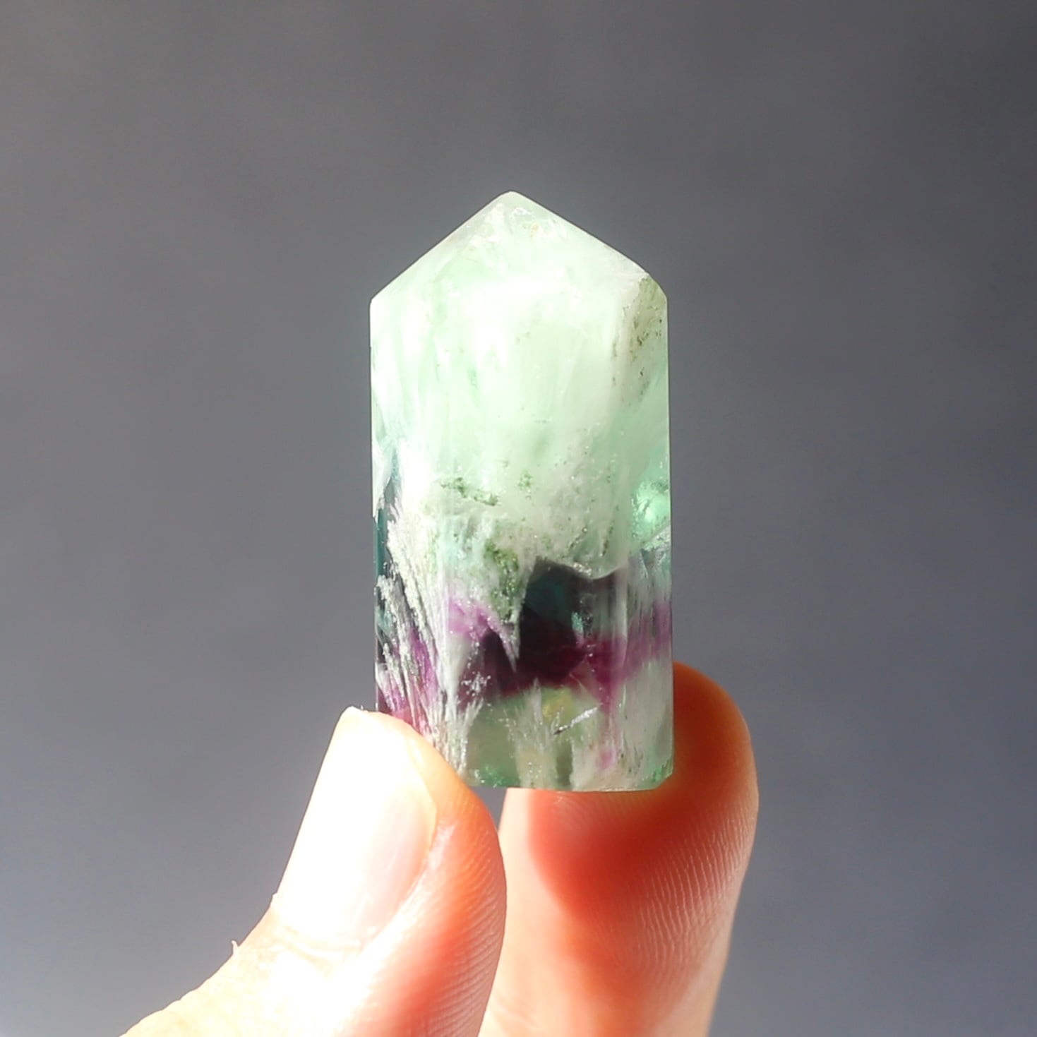 エンジェルフェザーフローライトのミニ六角柱ポイントです!