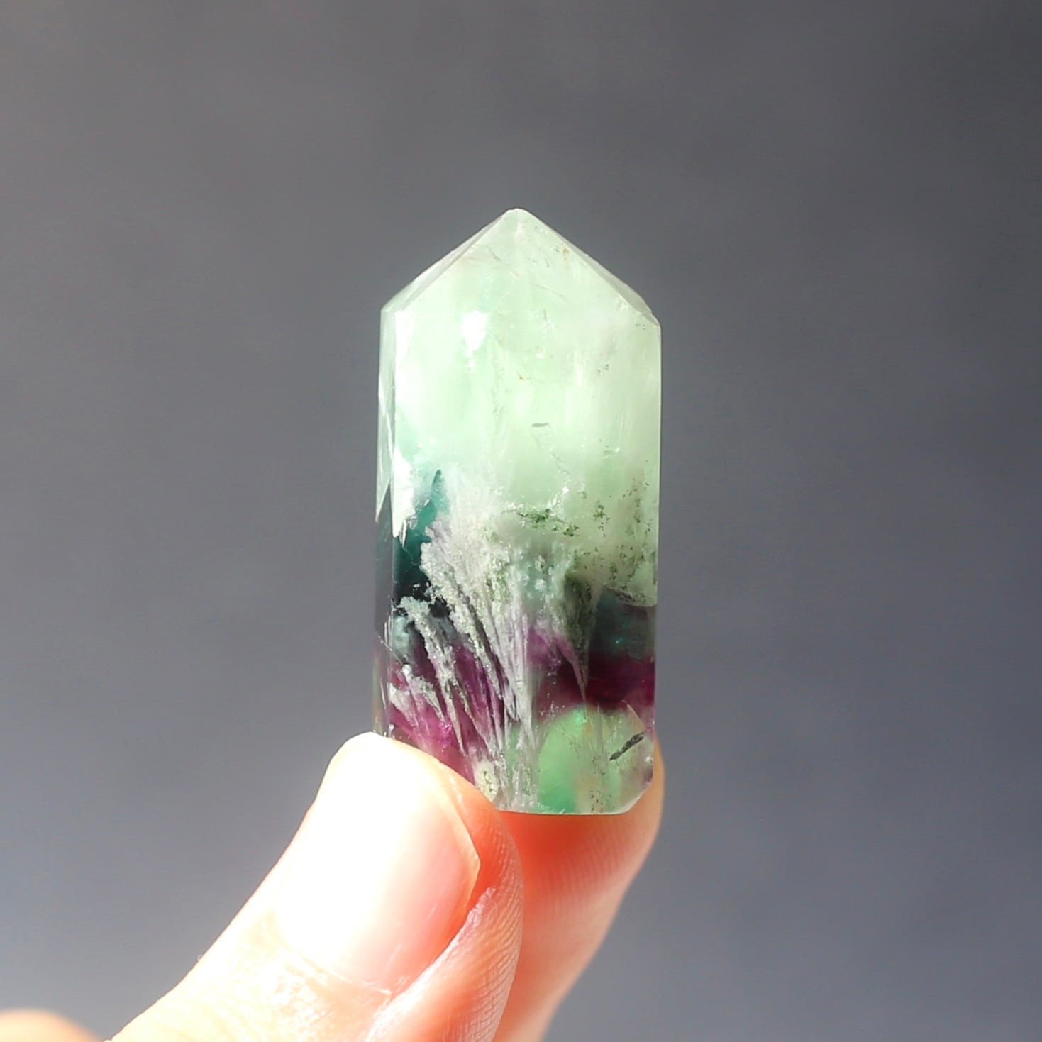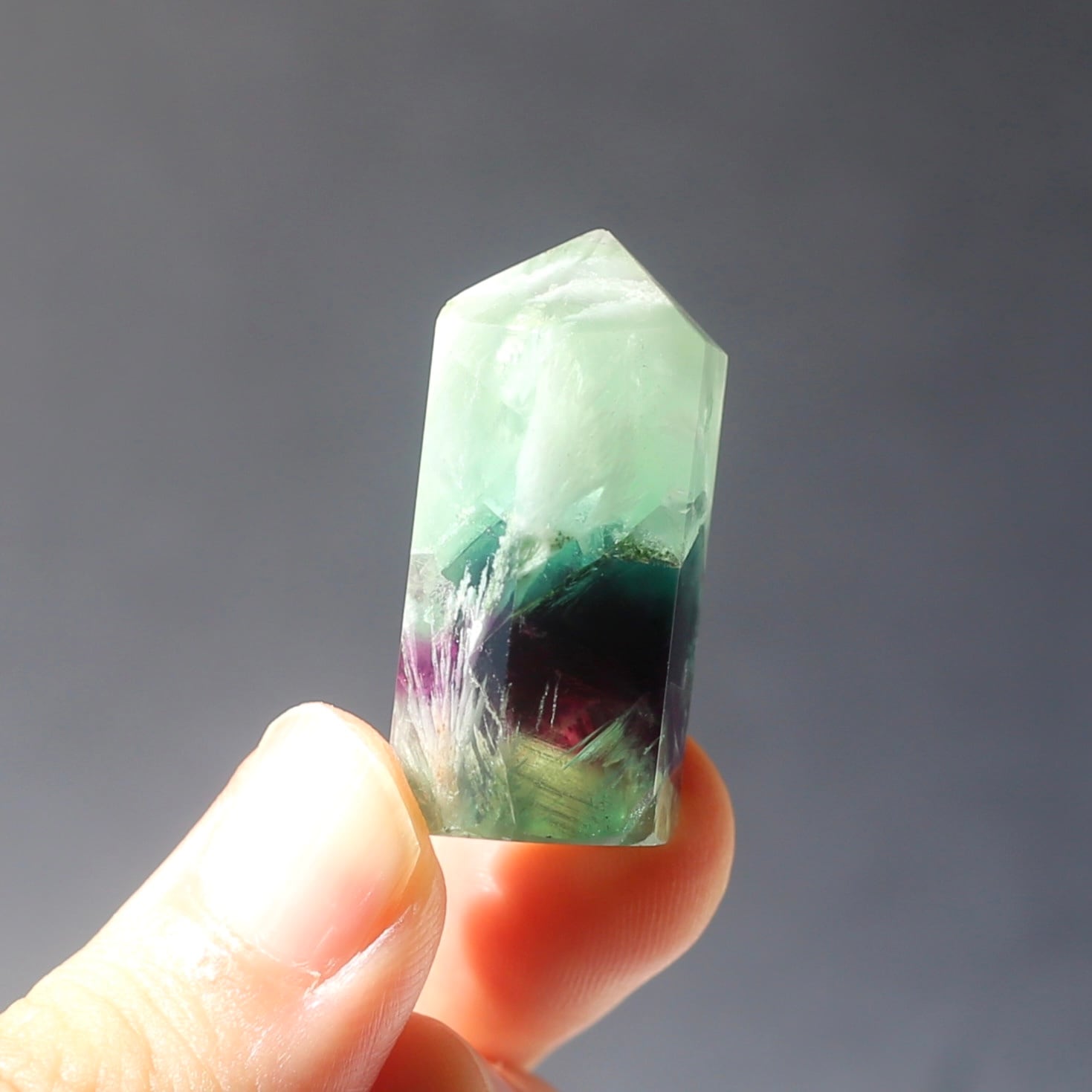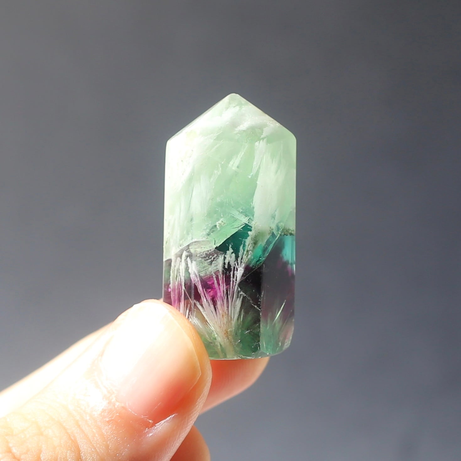 エンジェルフェザーフローライトのミニ六角柱ポイントです!