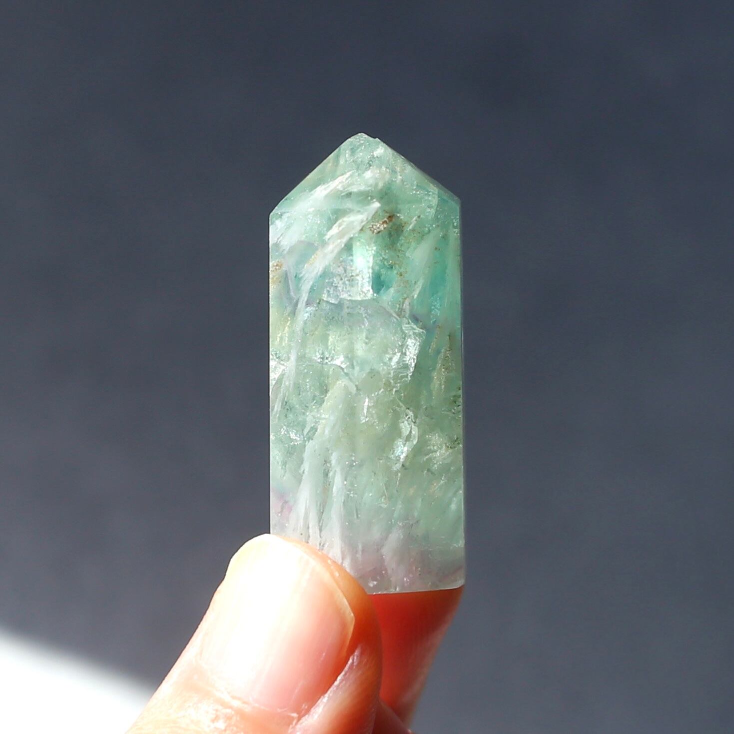 エンジェルフェザーフローライト ミニサイズ 六角柱 ポイント 天然石 蛍石 希少 鉱物
