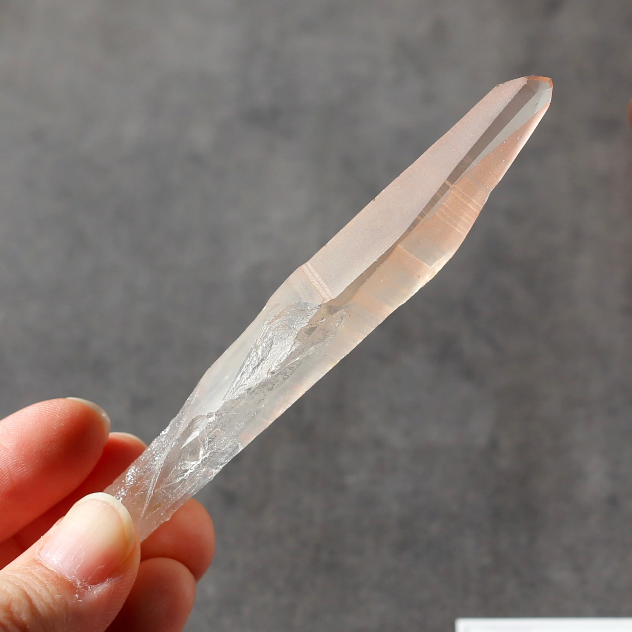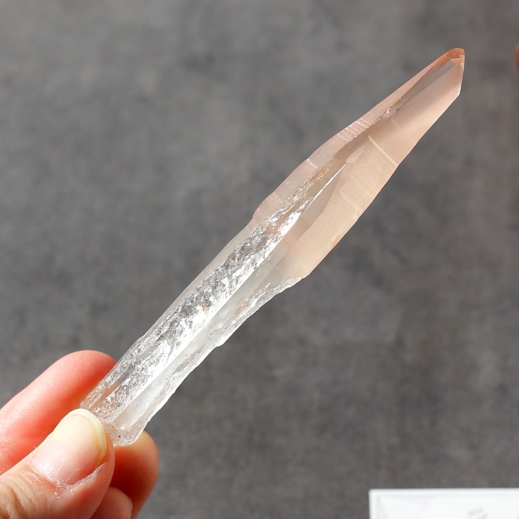 すらりと伸びた結晶にザラザラとしたストレーションが目を惹く個性的なピンクレムリアンシードです