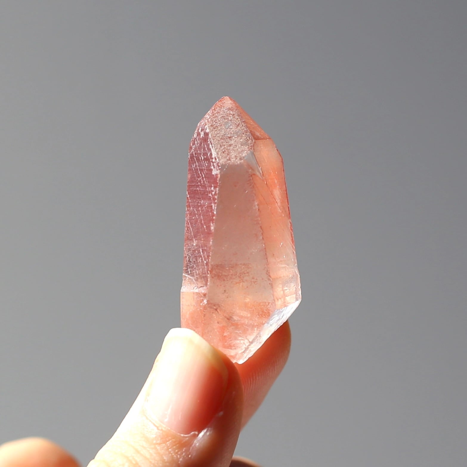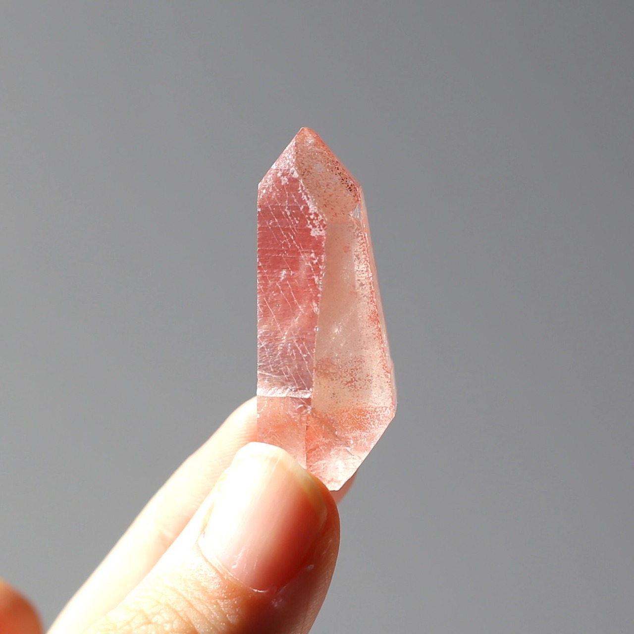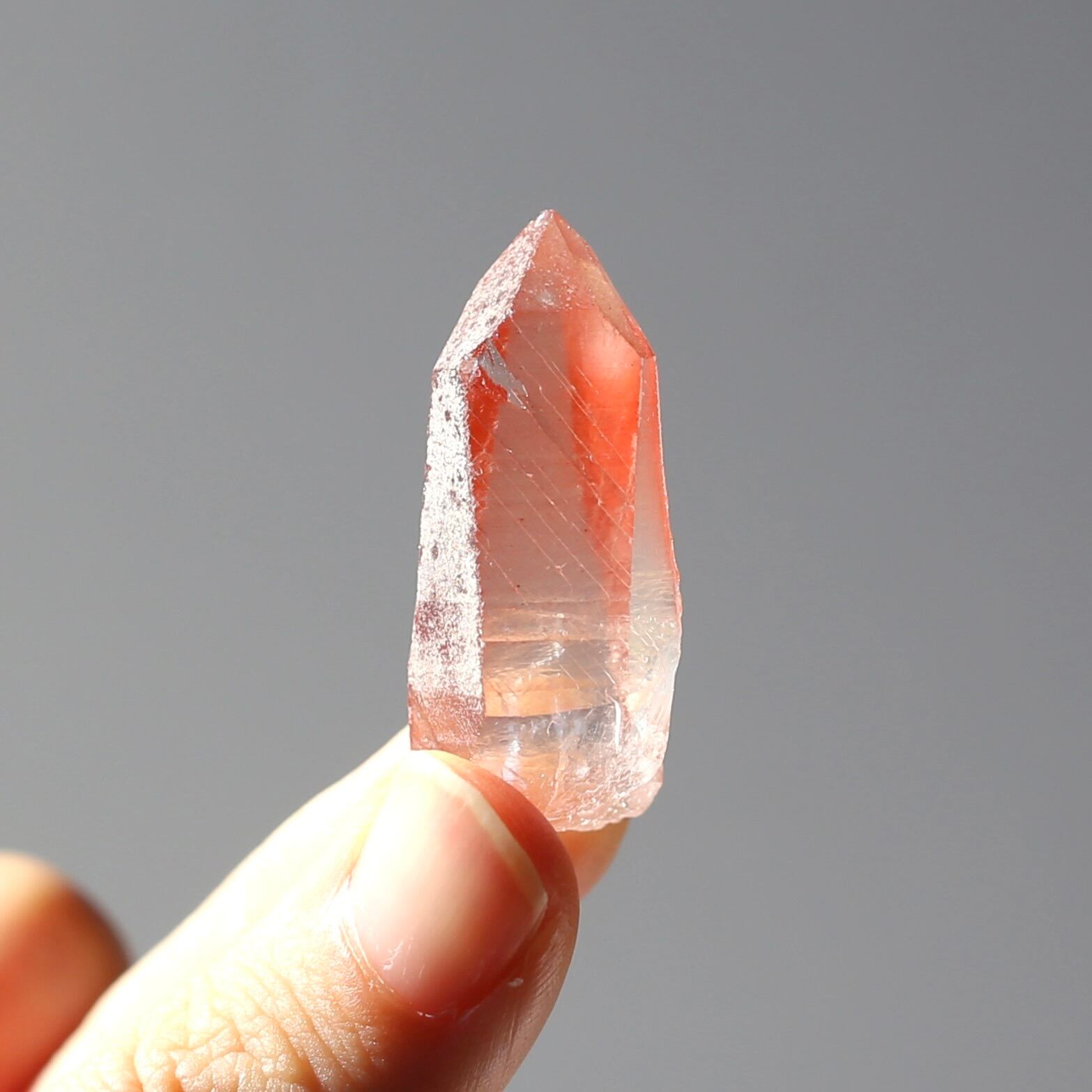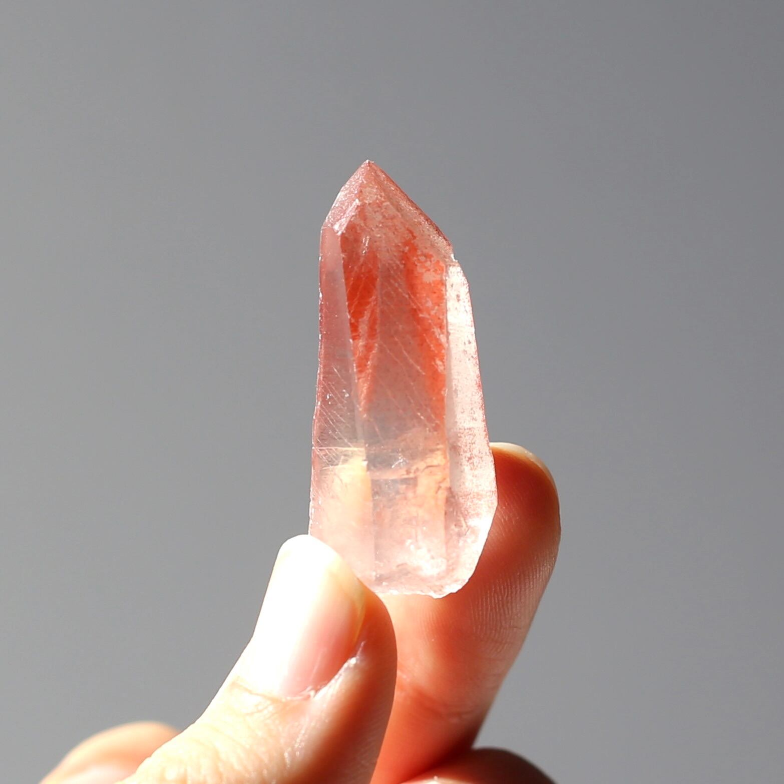 透明感の高いクォーツに濃いめのチェリー色がとっても可愛いディープピンクレムリアンシードです♪