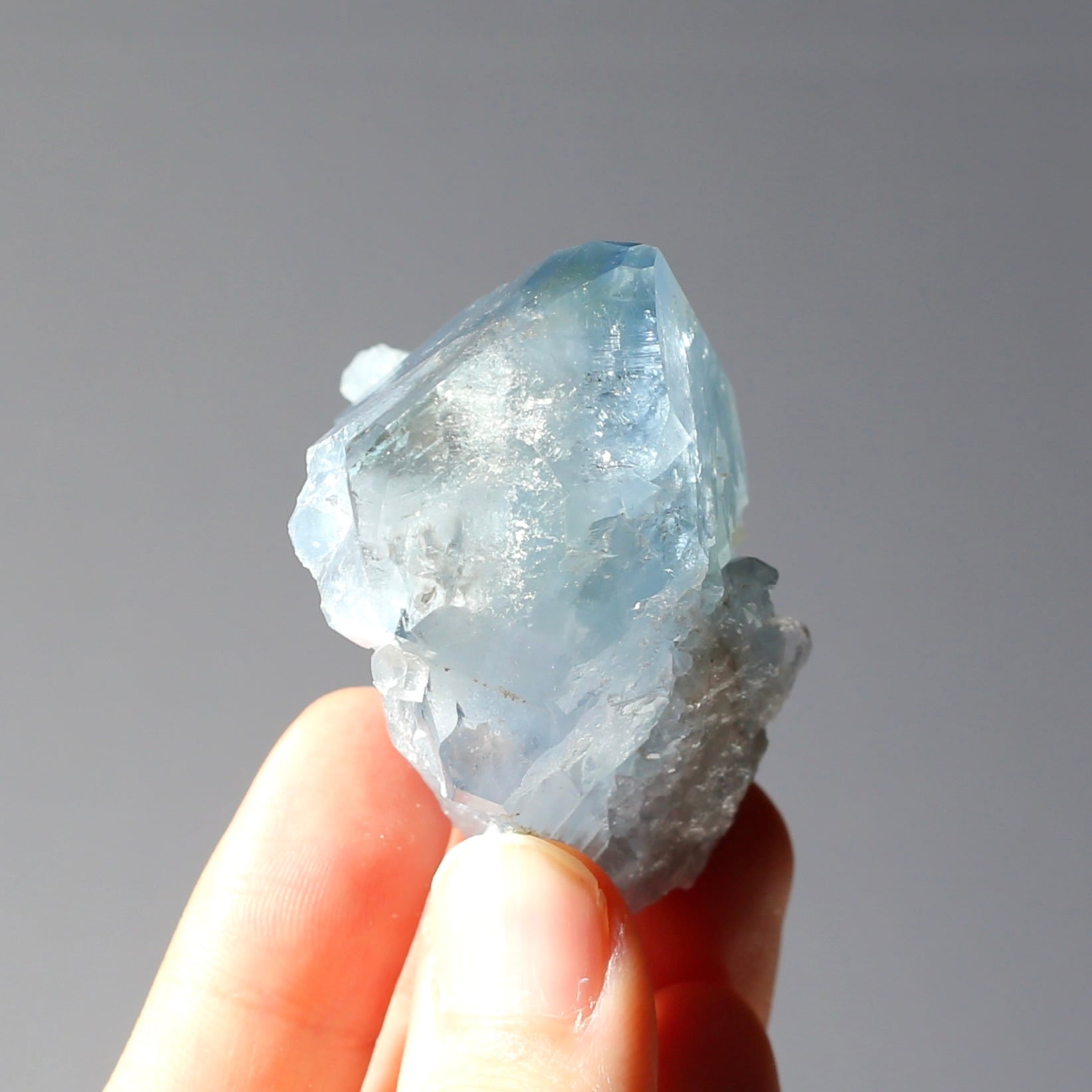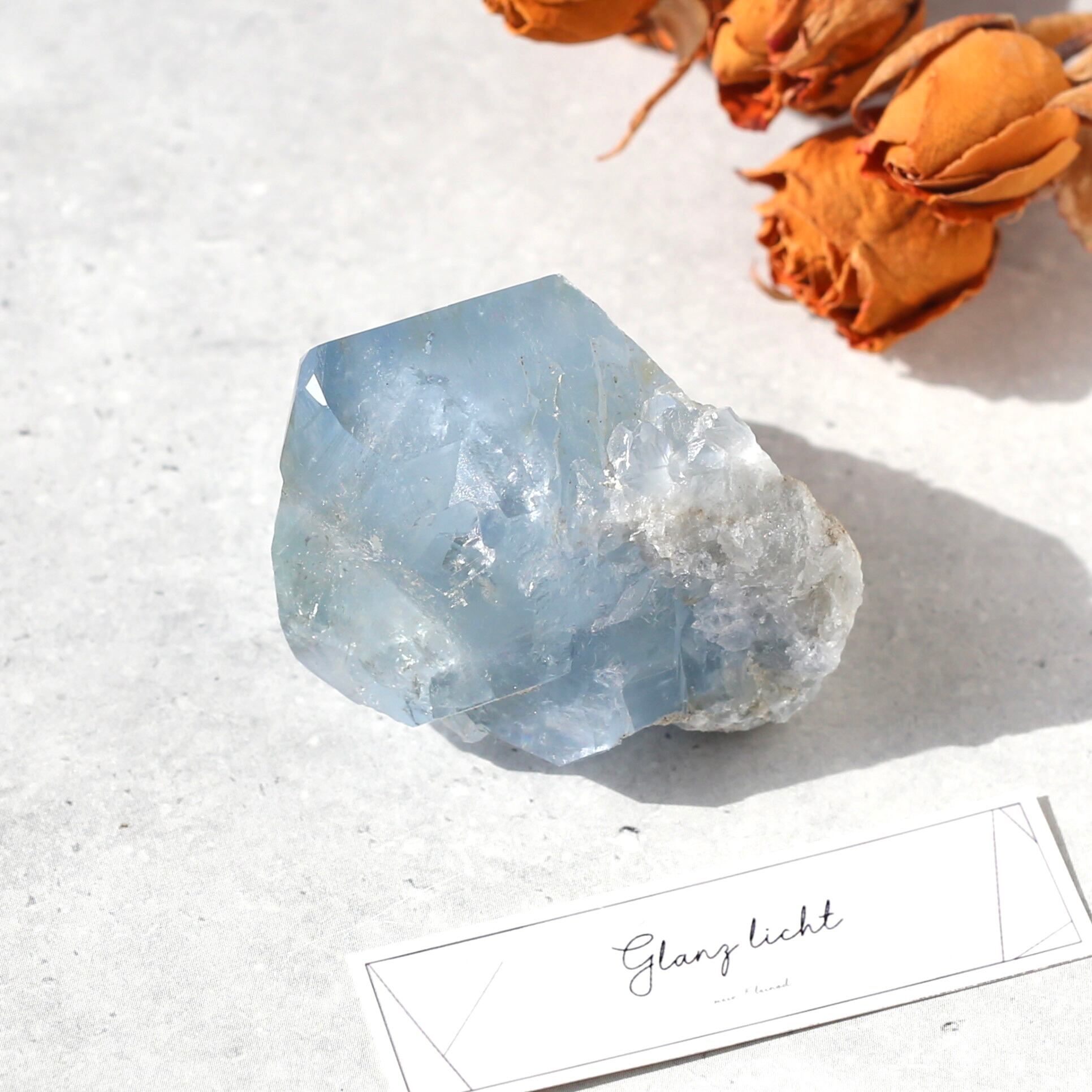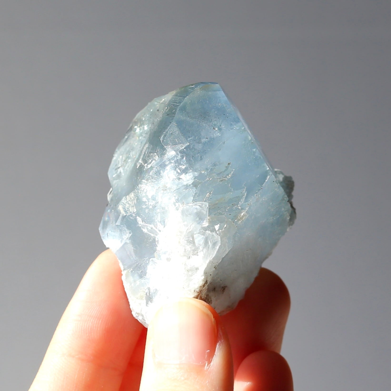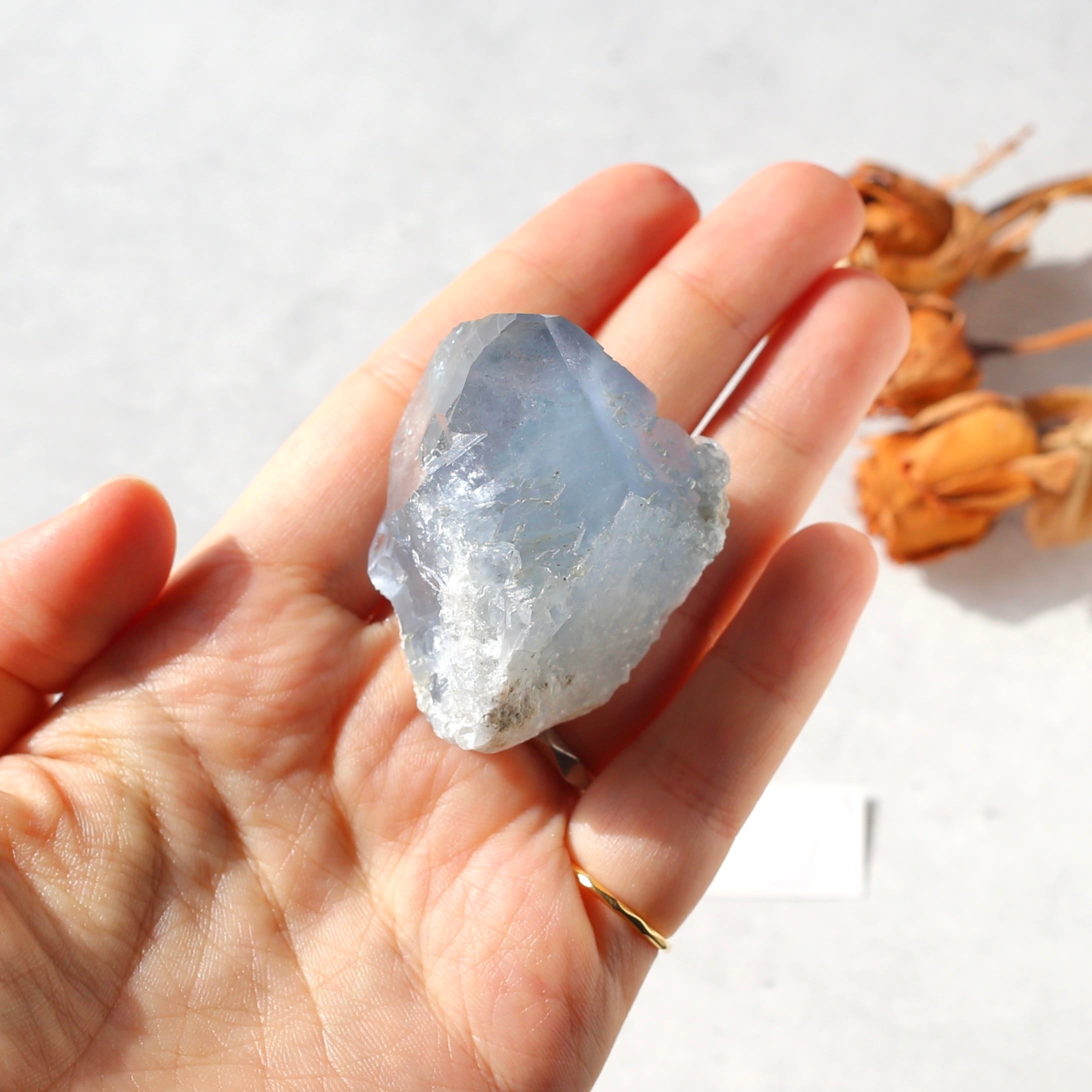 母岩がほとんどなくころんとした結晶なので、手に握って楽しむことができる珍しいセレスタイトです♪