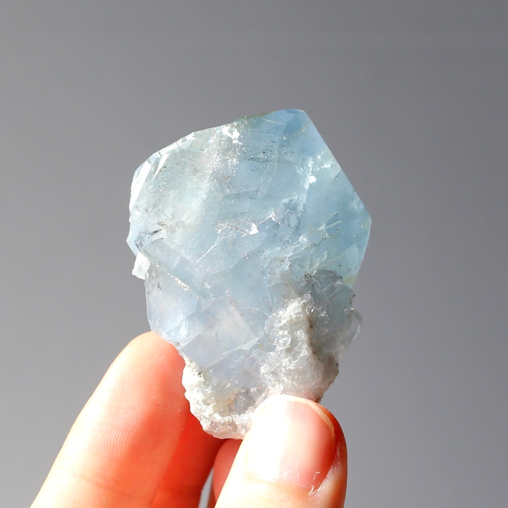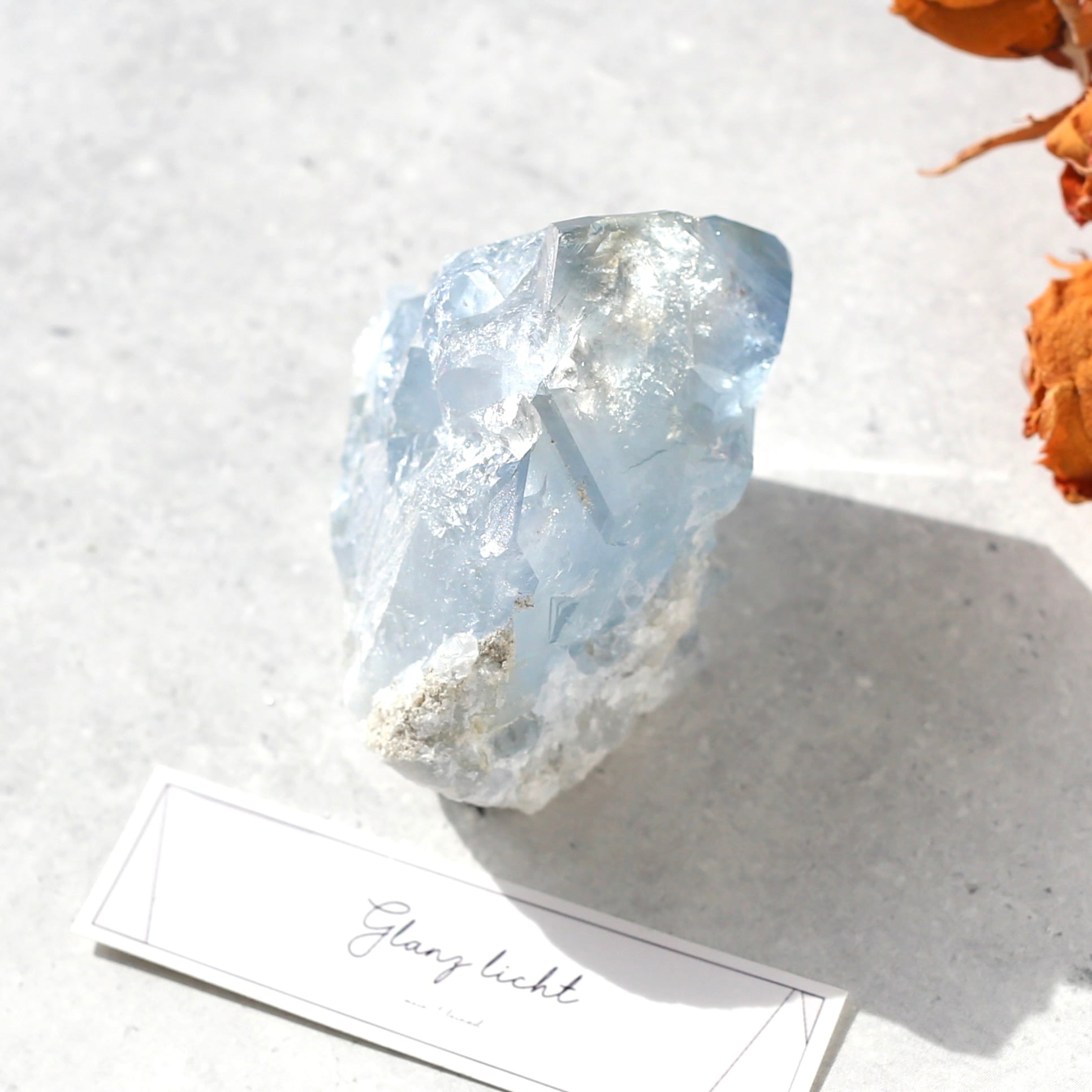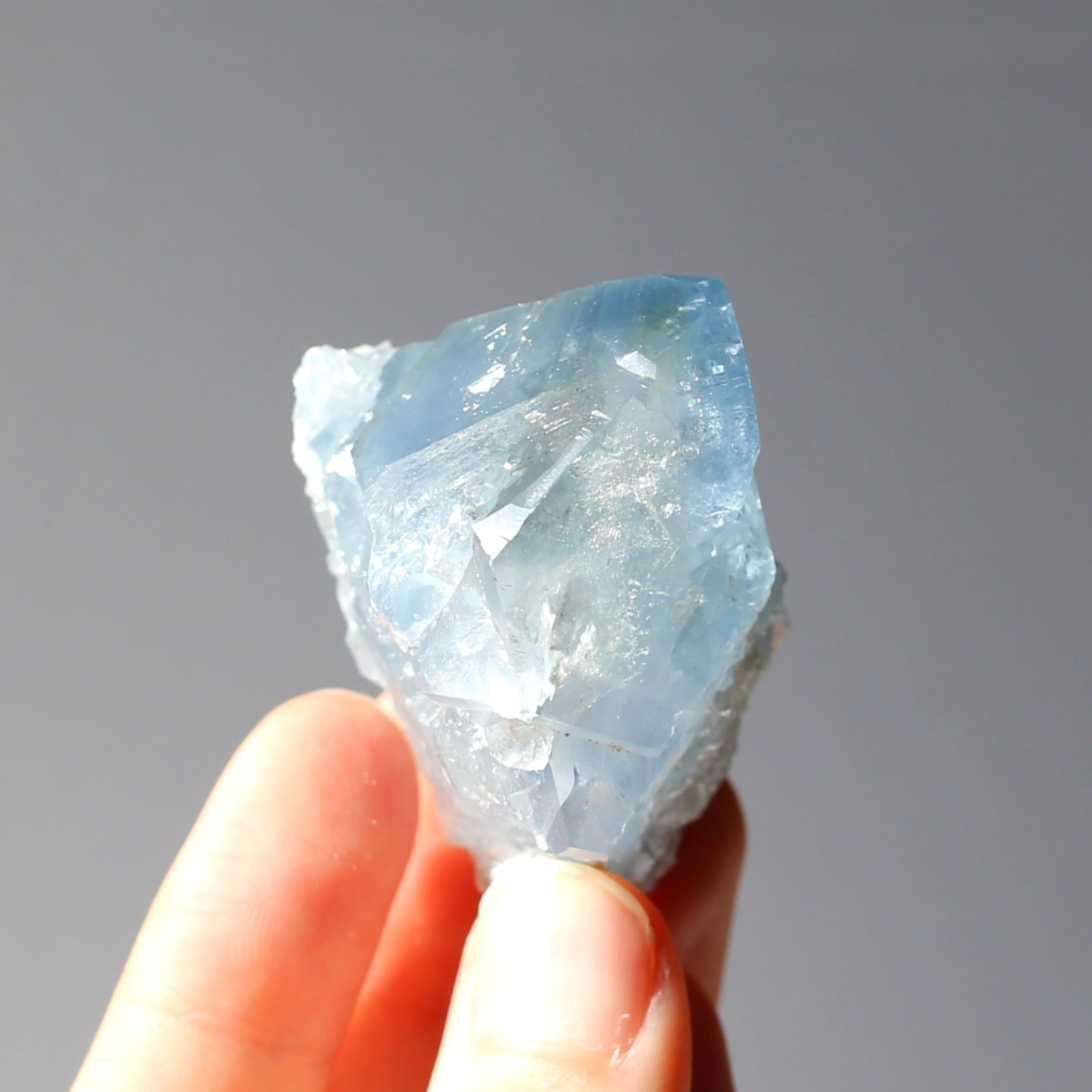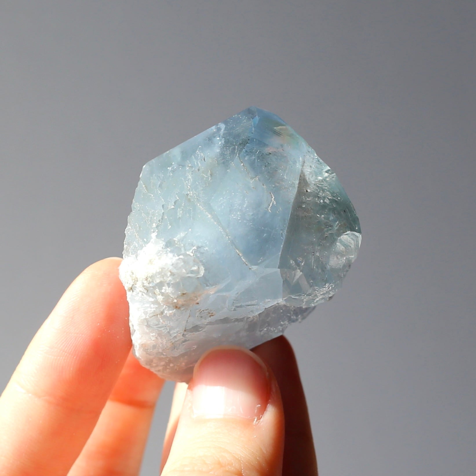 母岩がほとんどなくころんとした結晶なので、手に握って楽しむことができる珍しいセレスタイトです♪