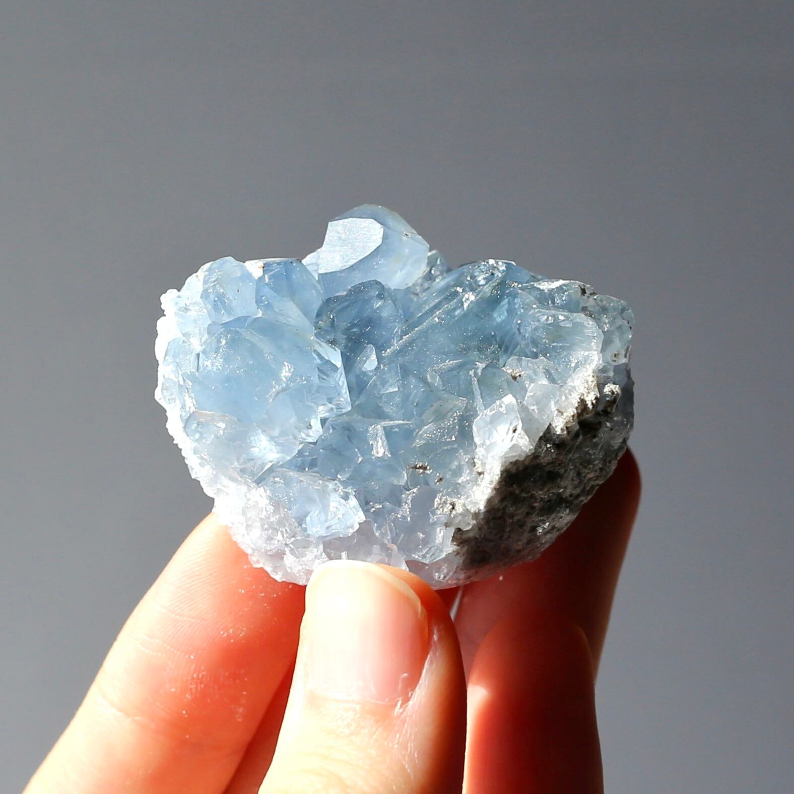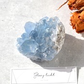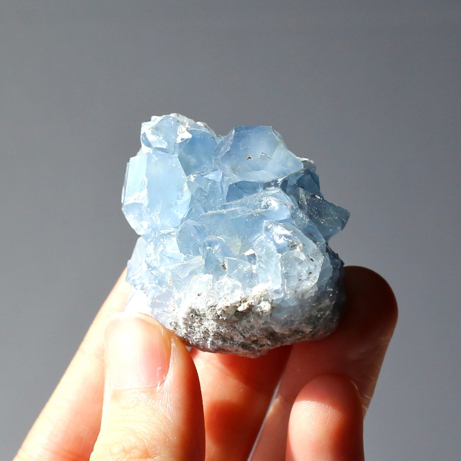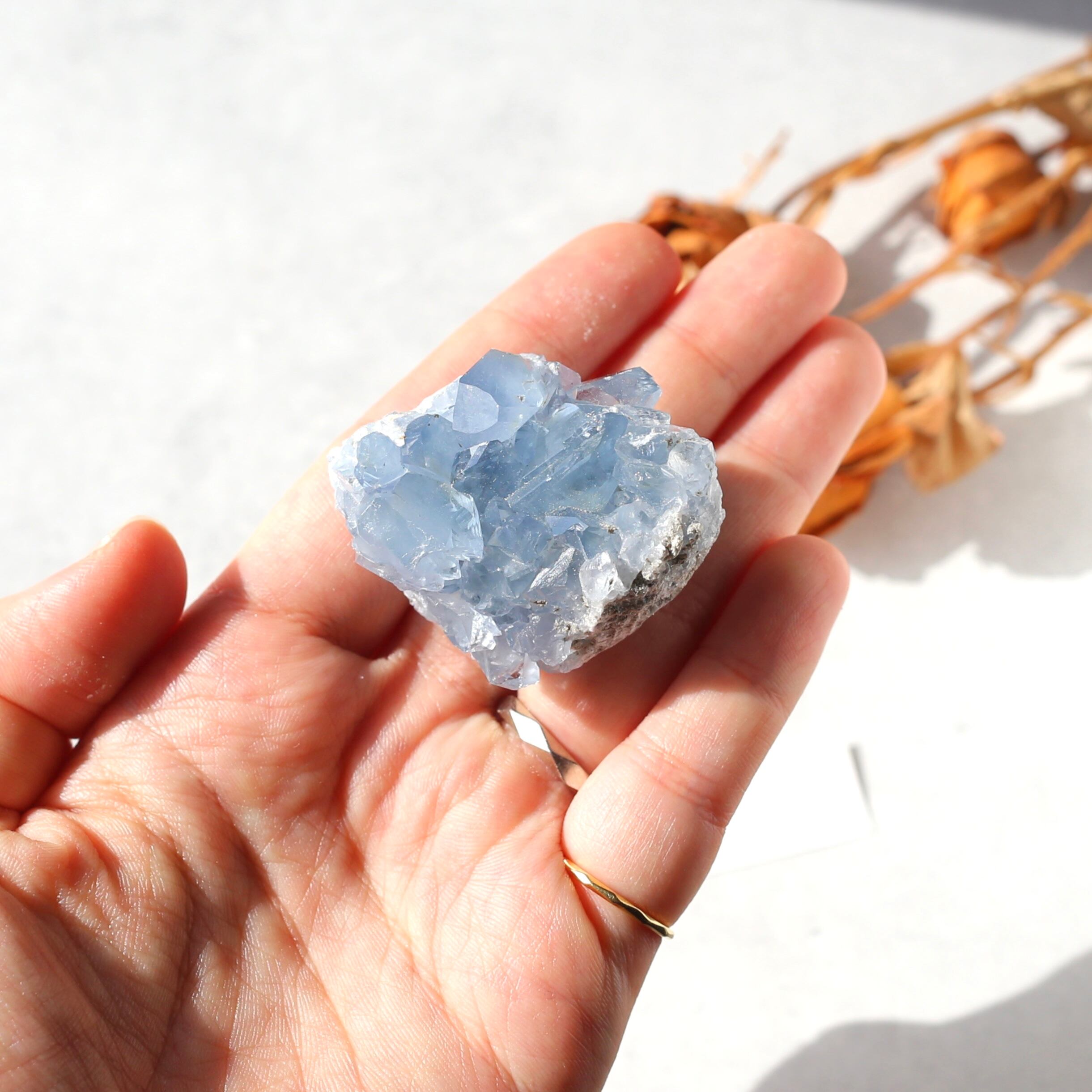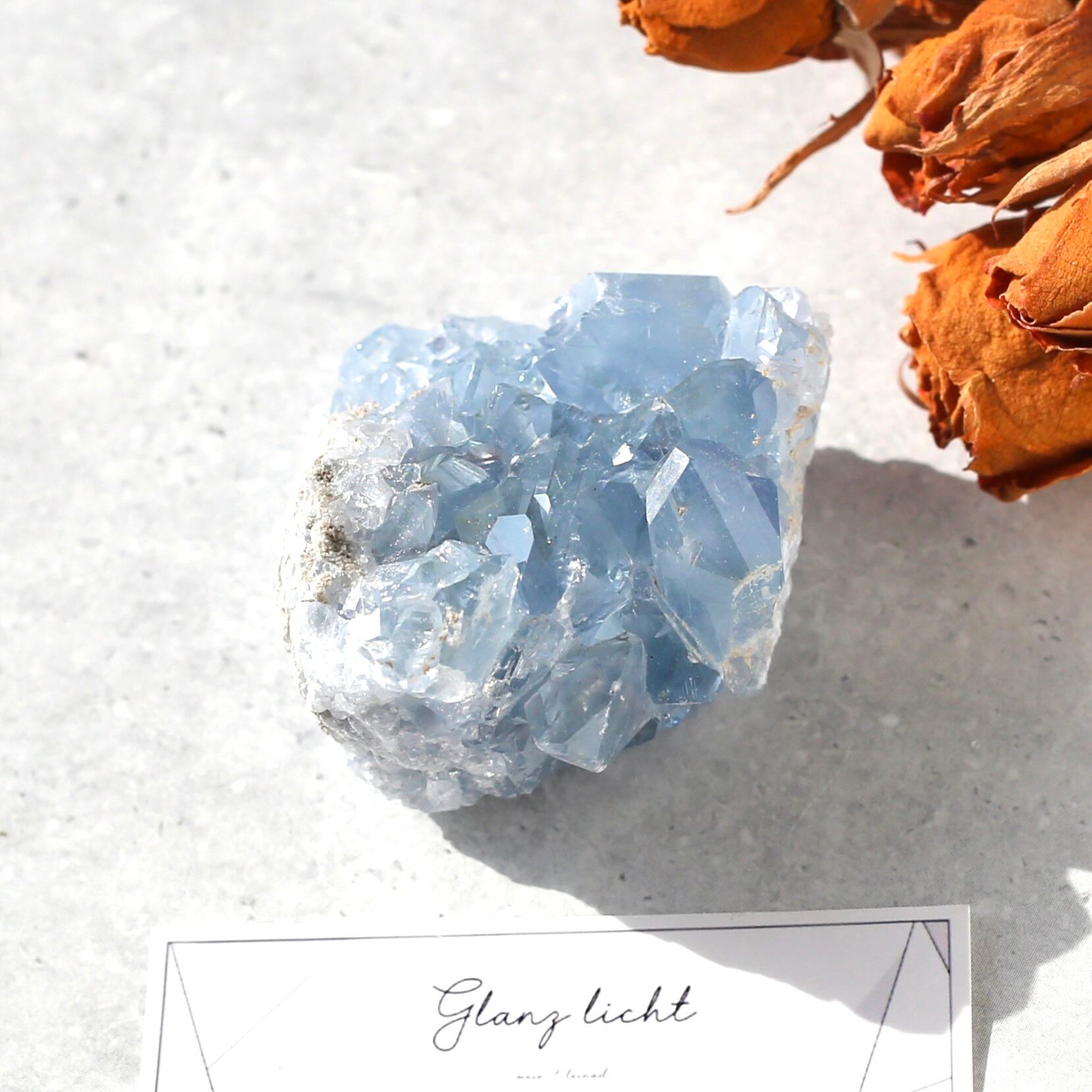 小さめサイズながら、深みのある透明感を感じるブルーがとても綺麗なセレスタイトクラスターです