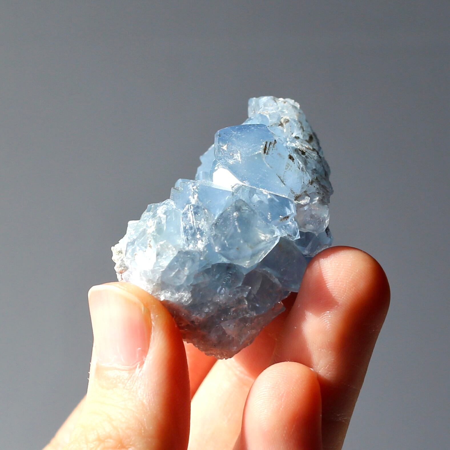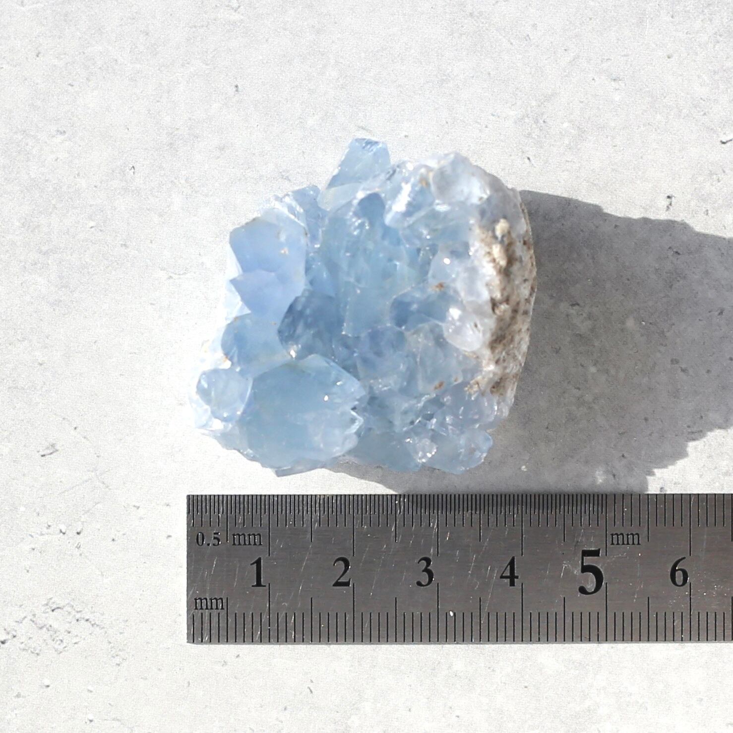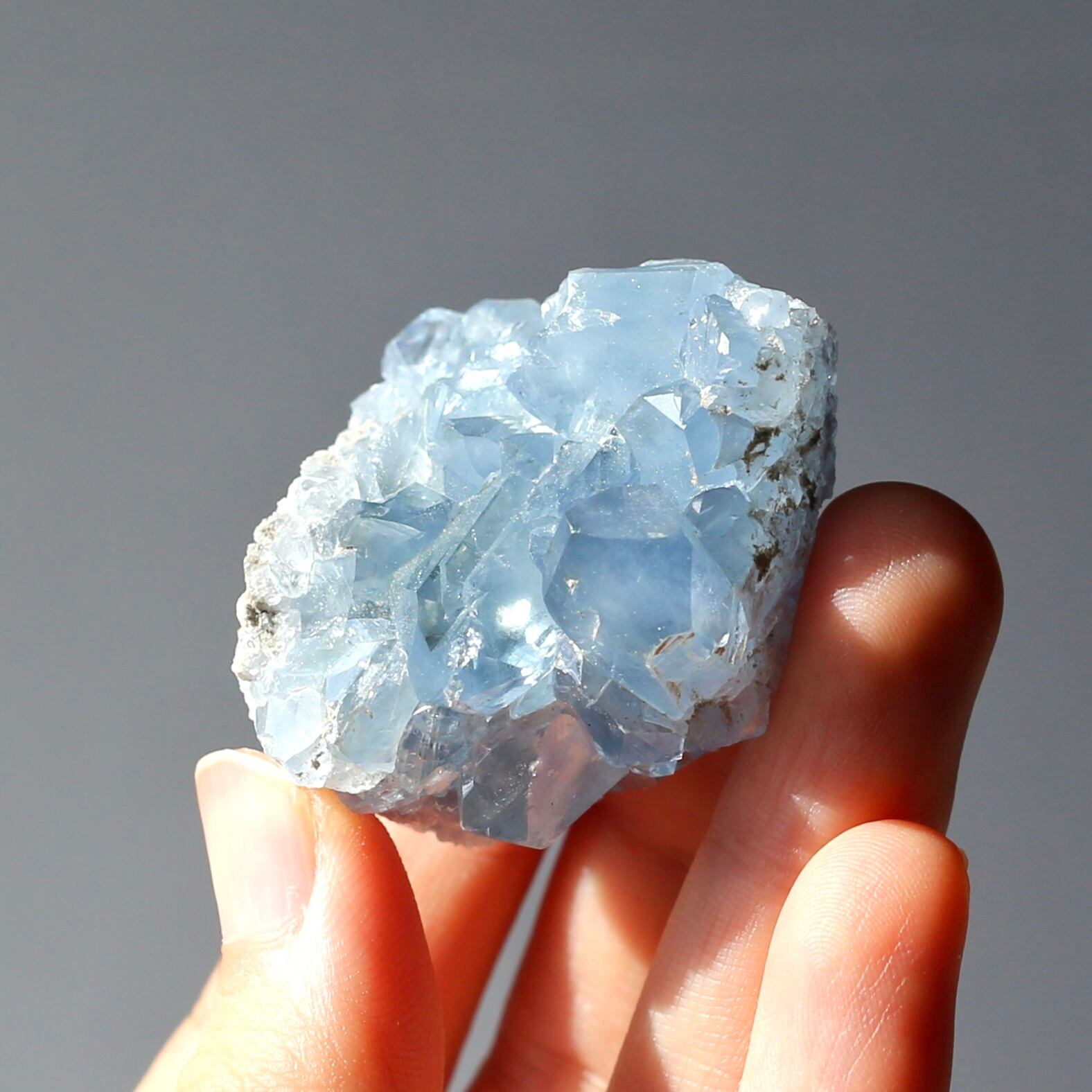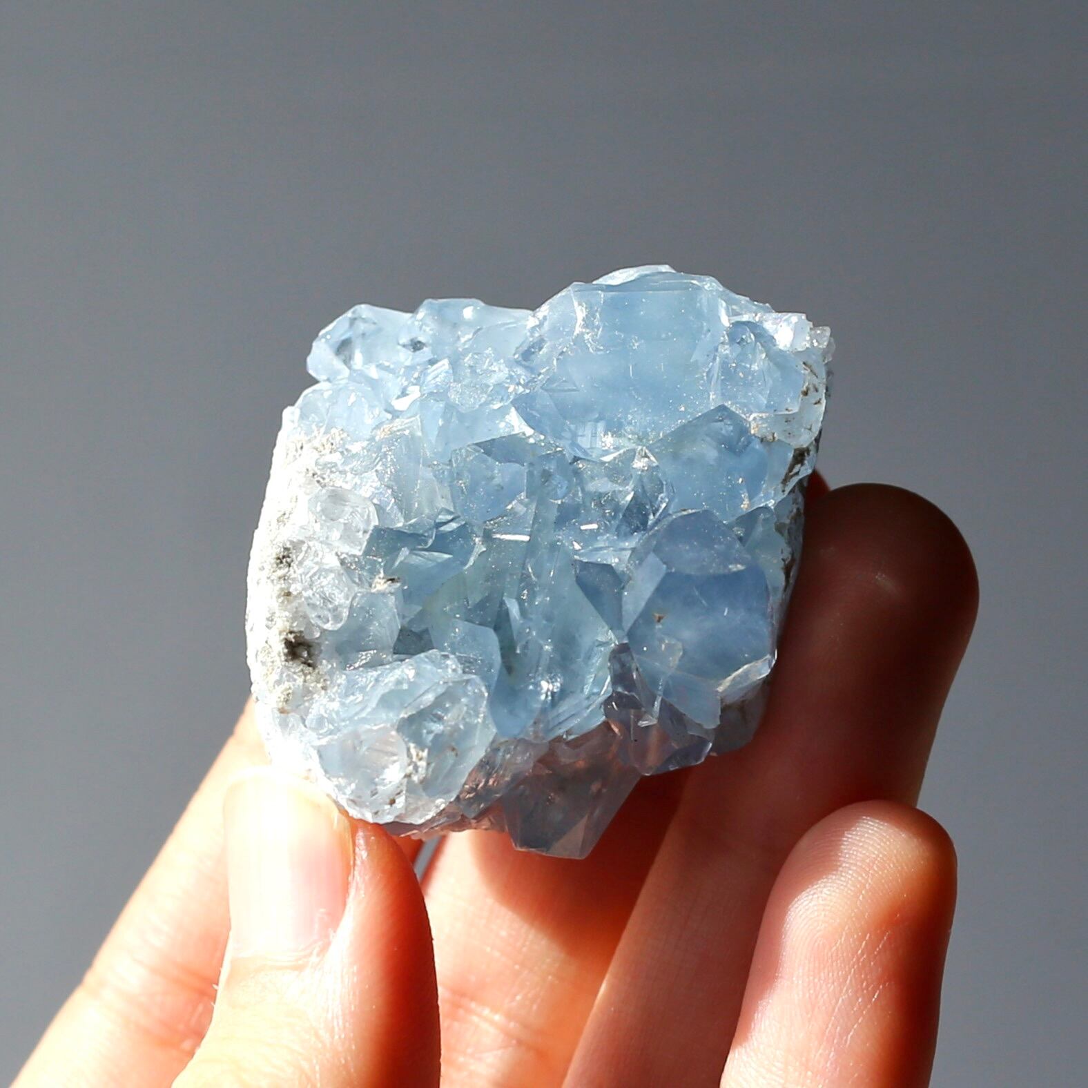 小さめサイズながら、深みのある透明感を感じるブルーがとても綺麗なセレスタイトクラスターです