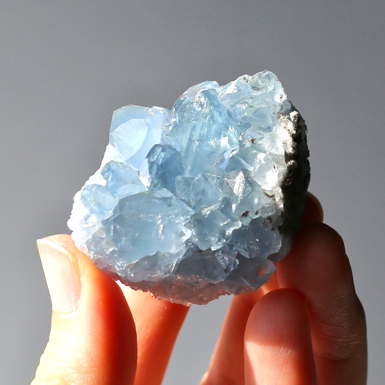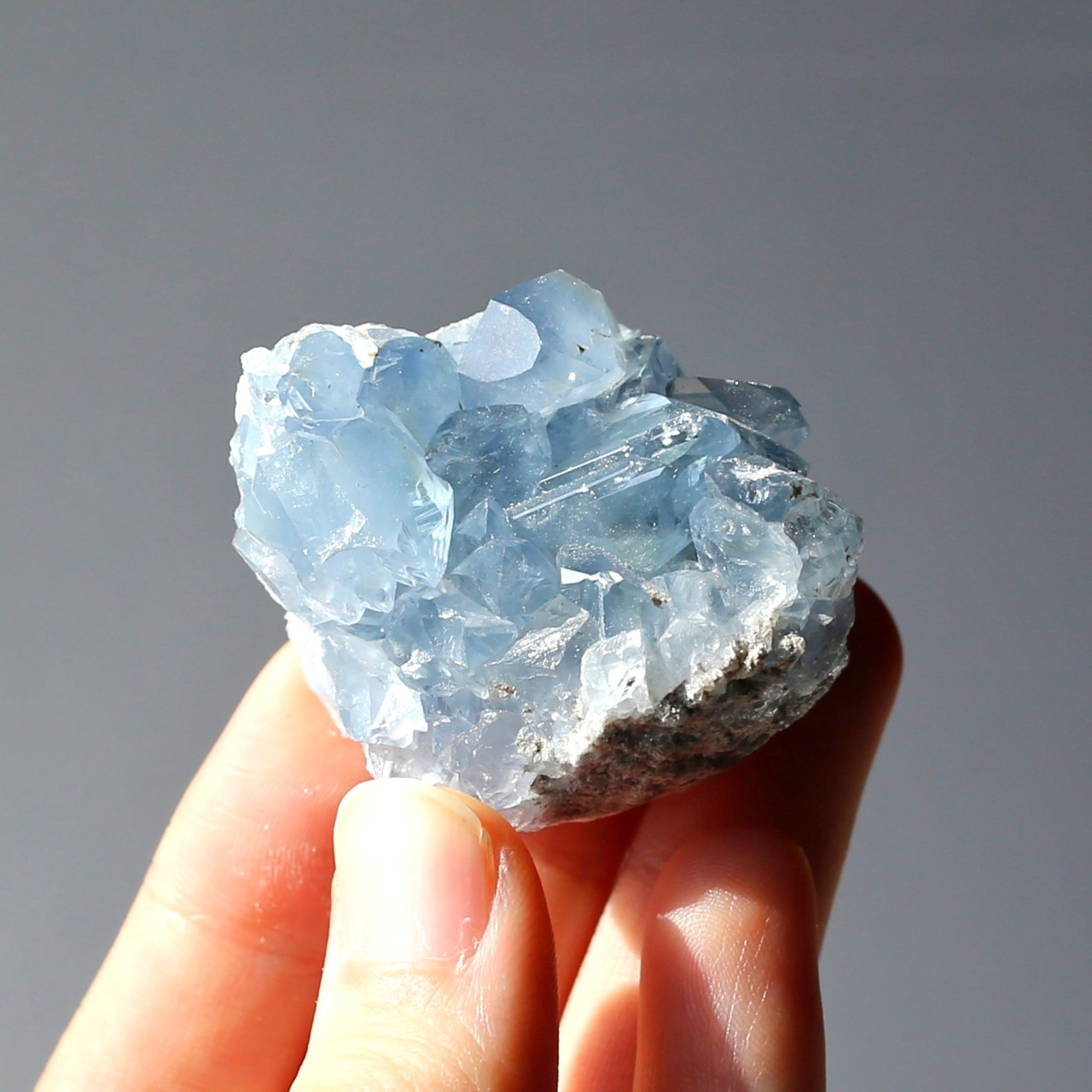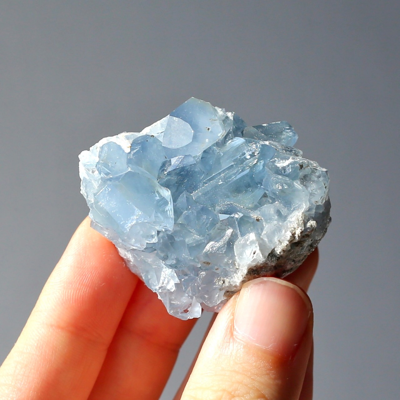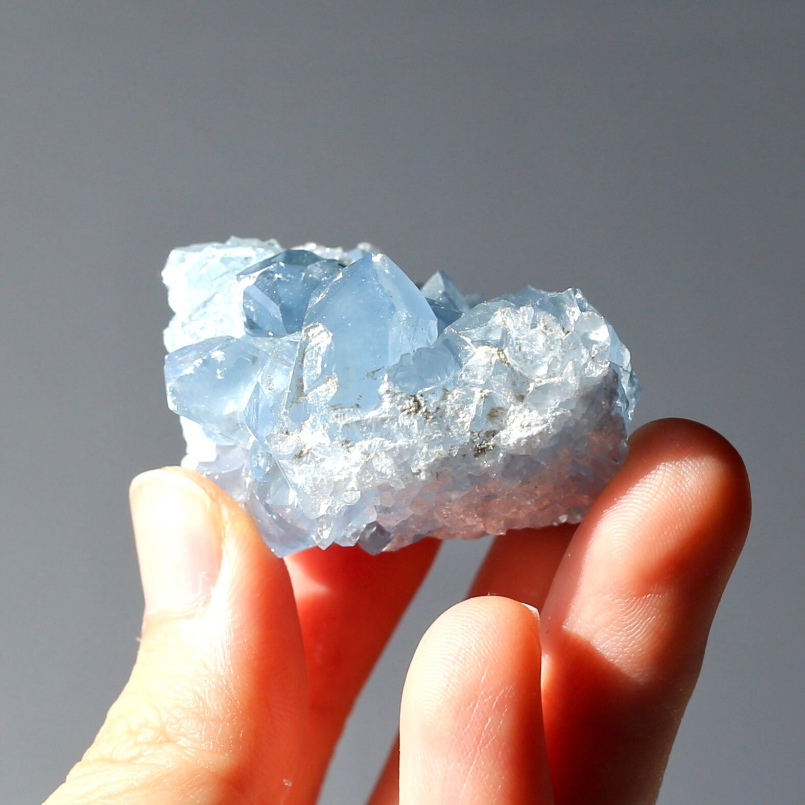 小さめサイズながら、深みのある透明感を感じるブルーがとても綺麗なセレスタイトクラスターです