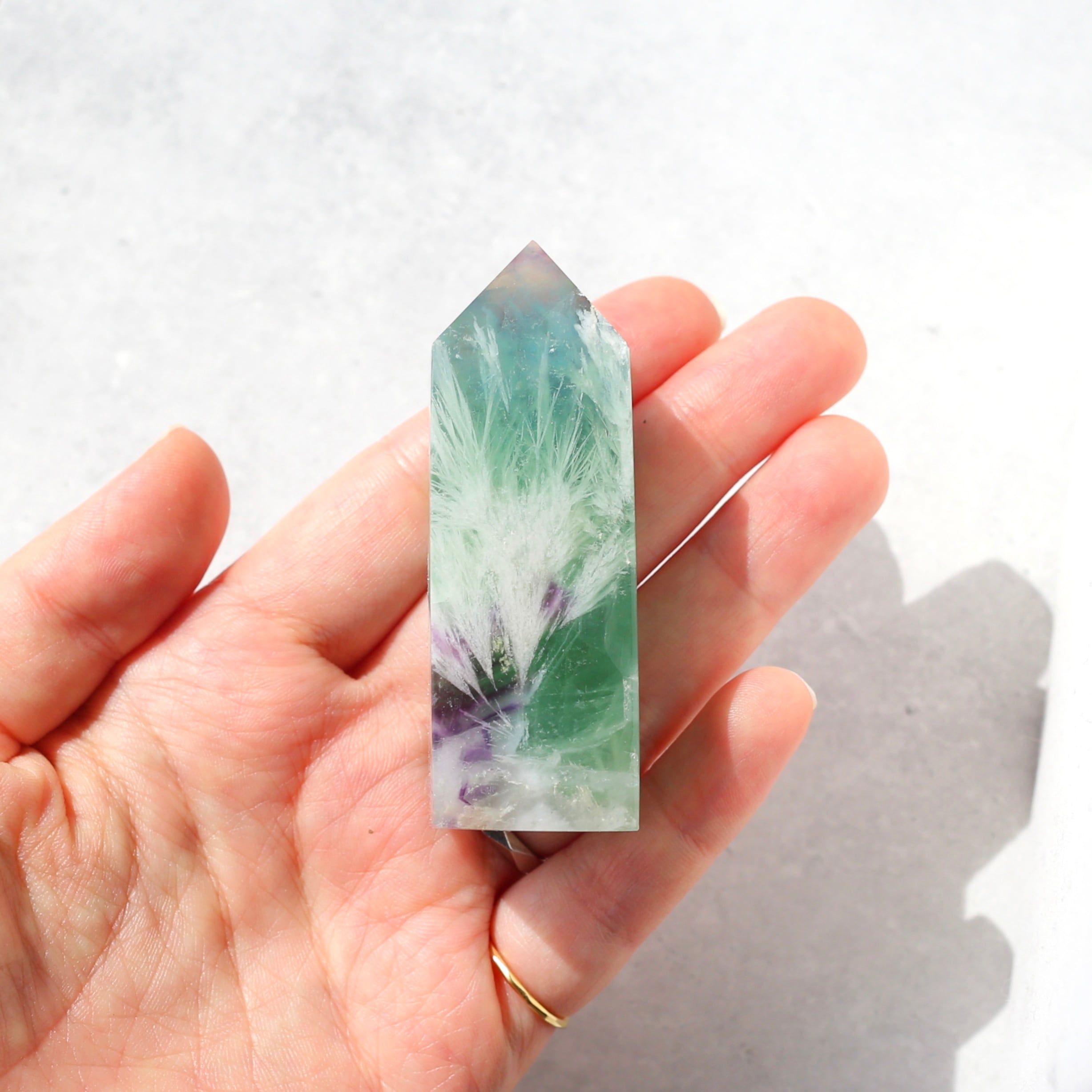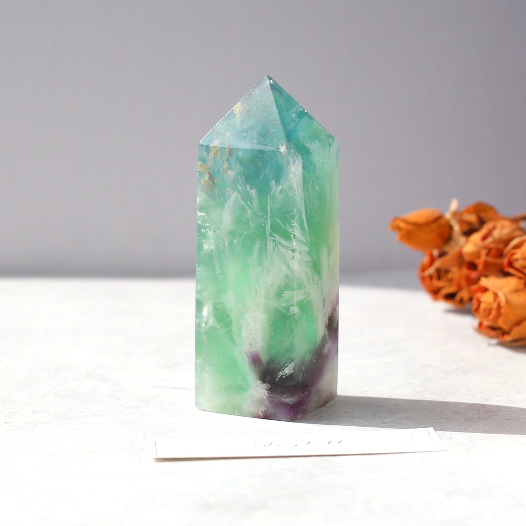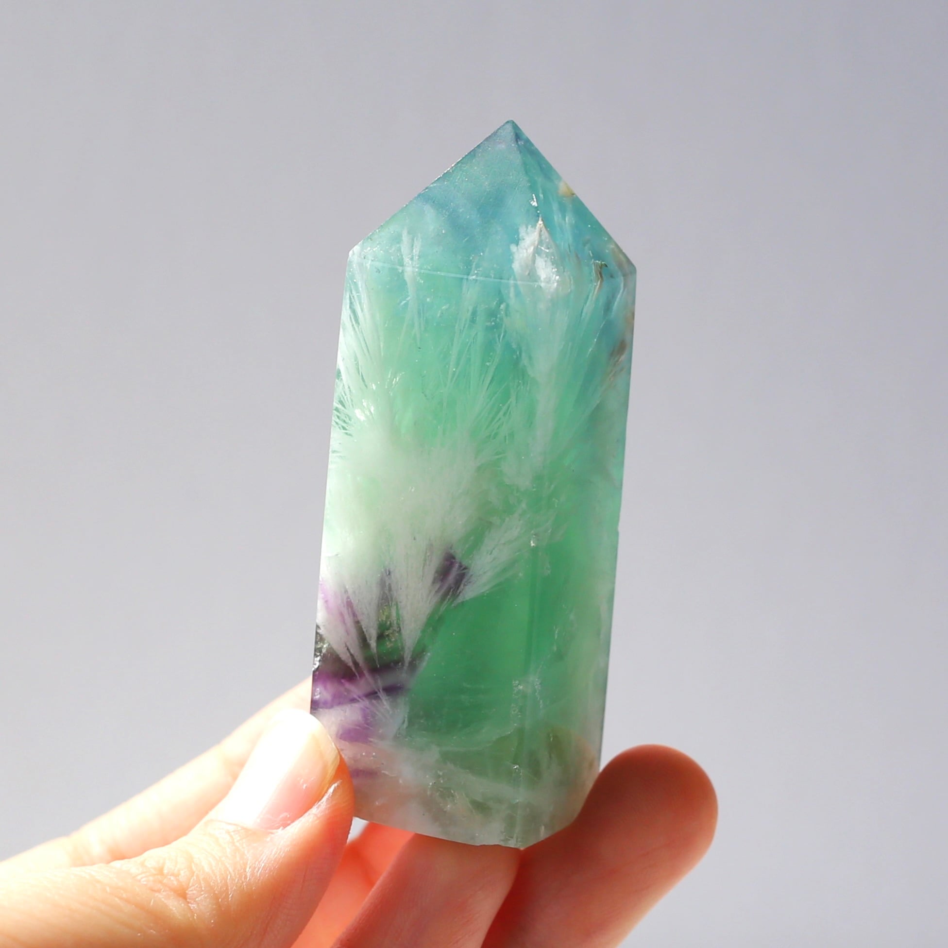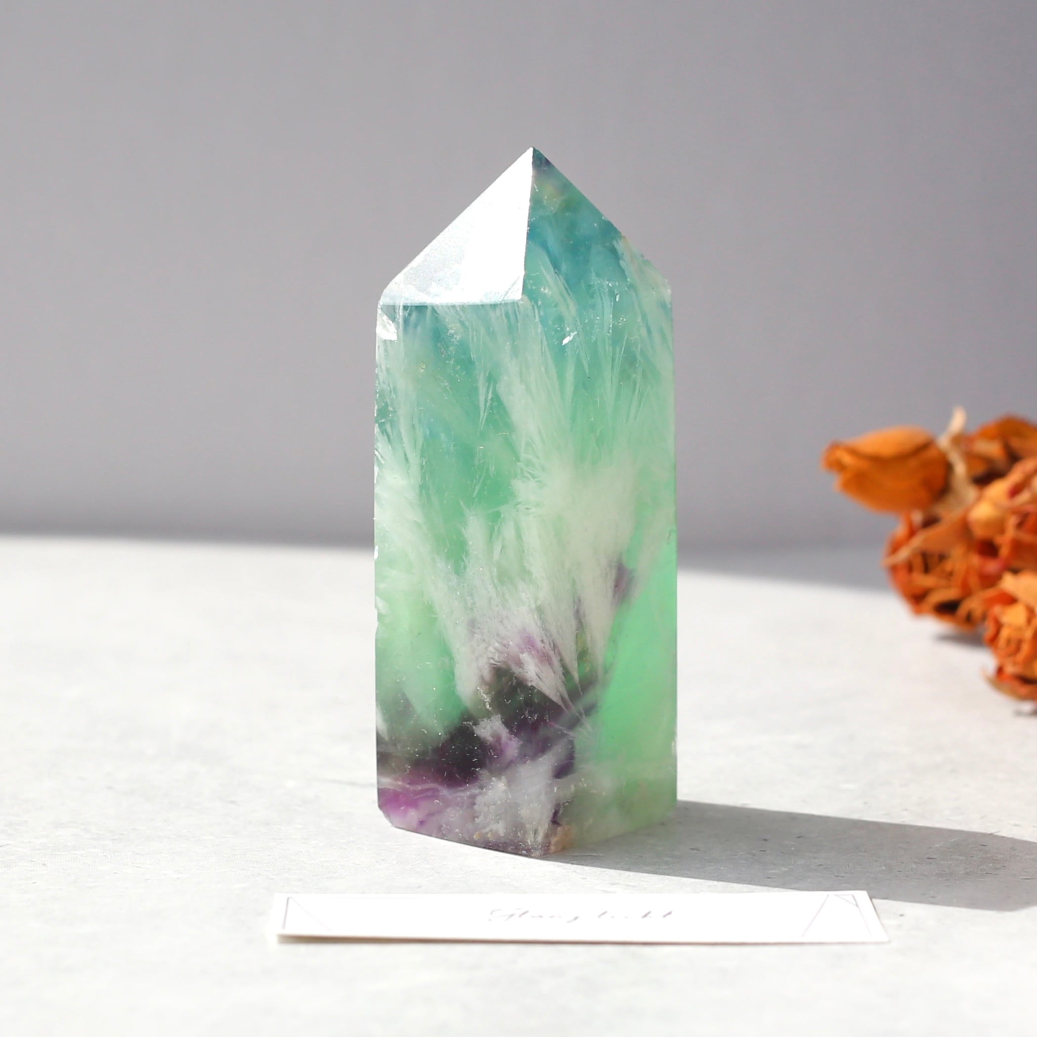 エンジェルフェザーフローライト タワー型 天然石 蛍石 希少 鉱物