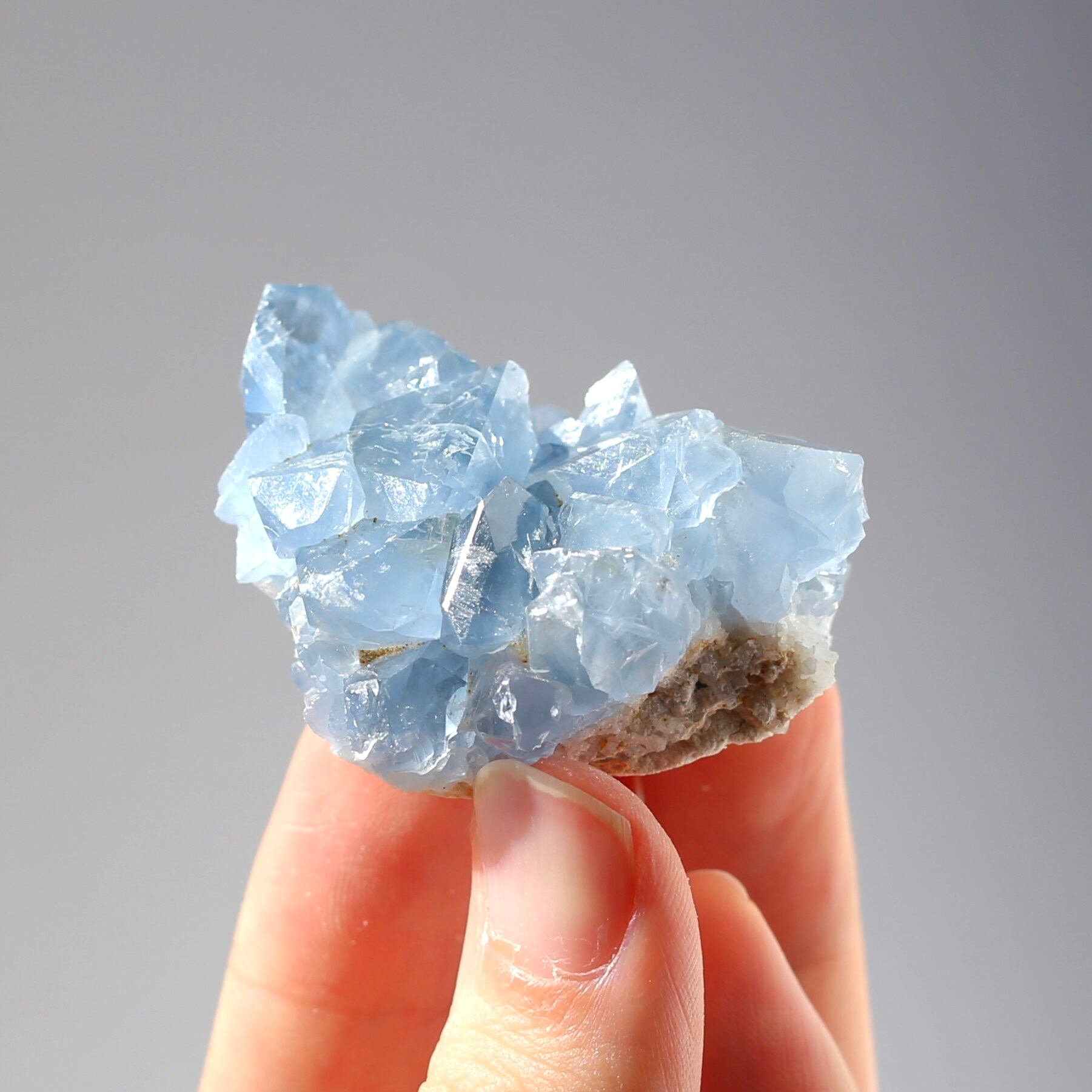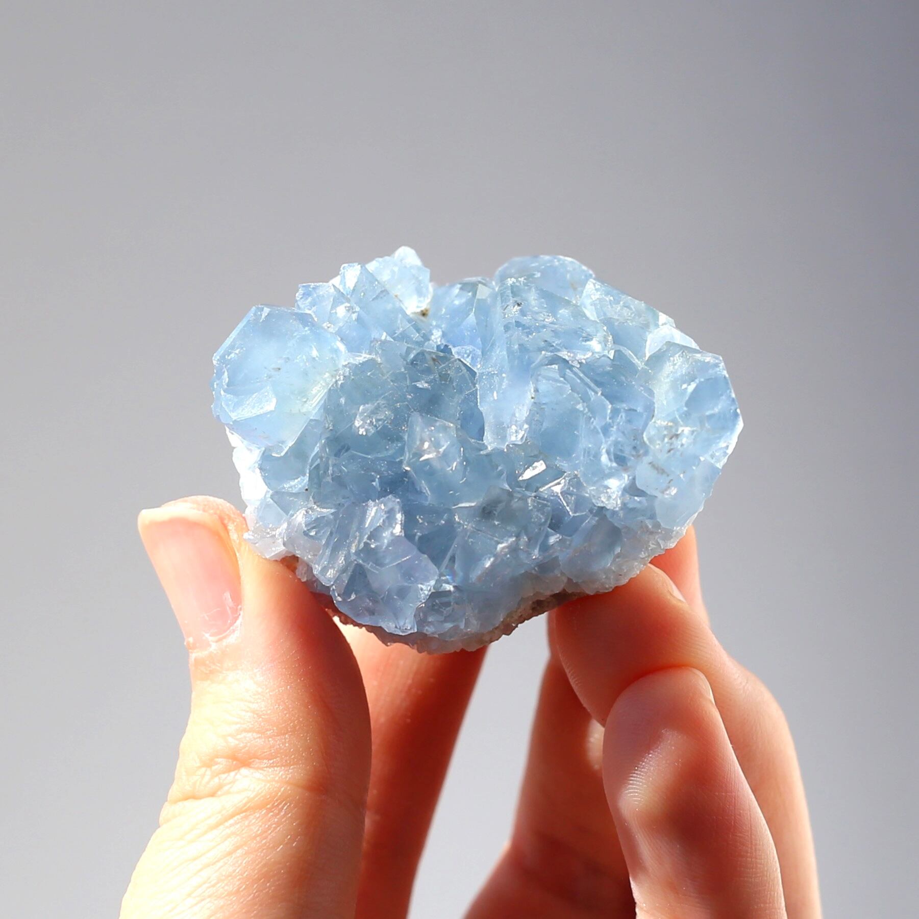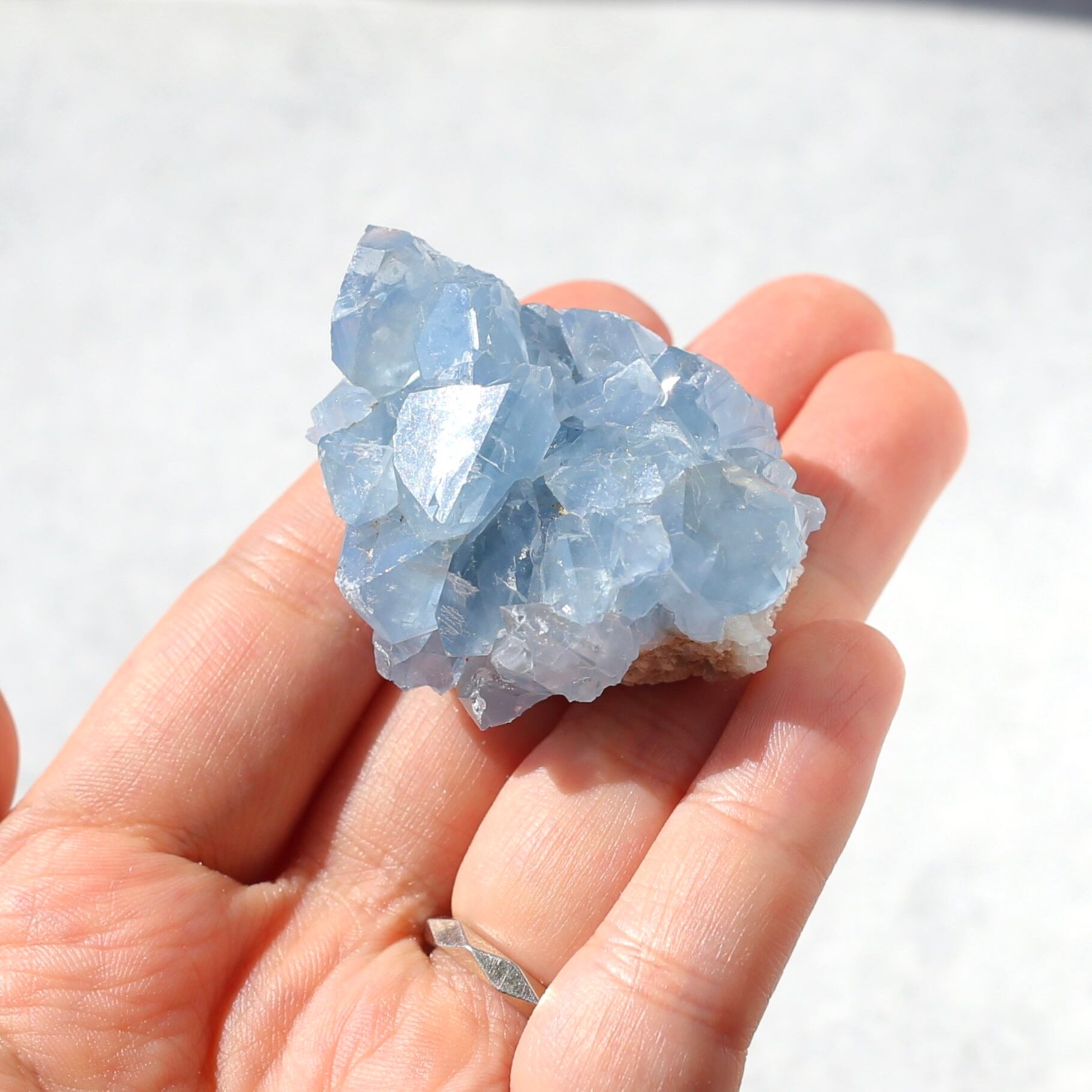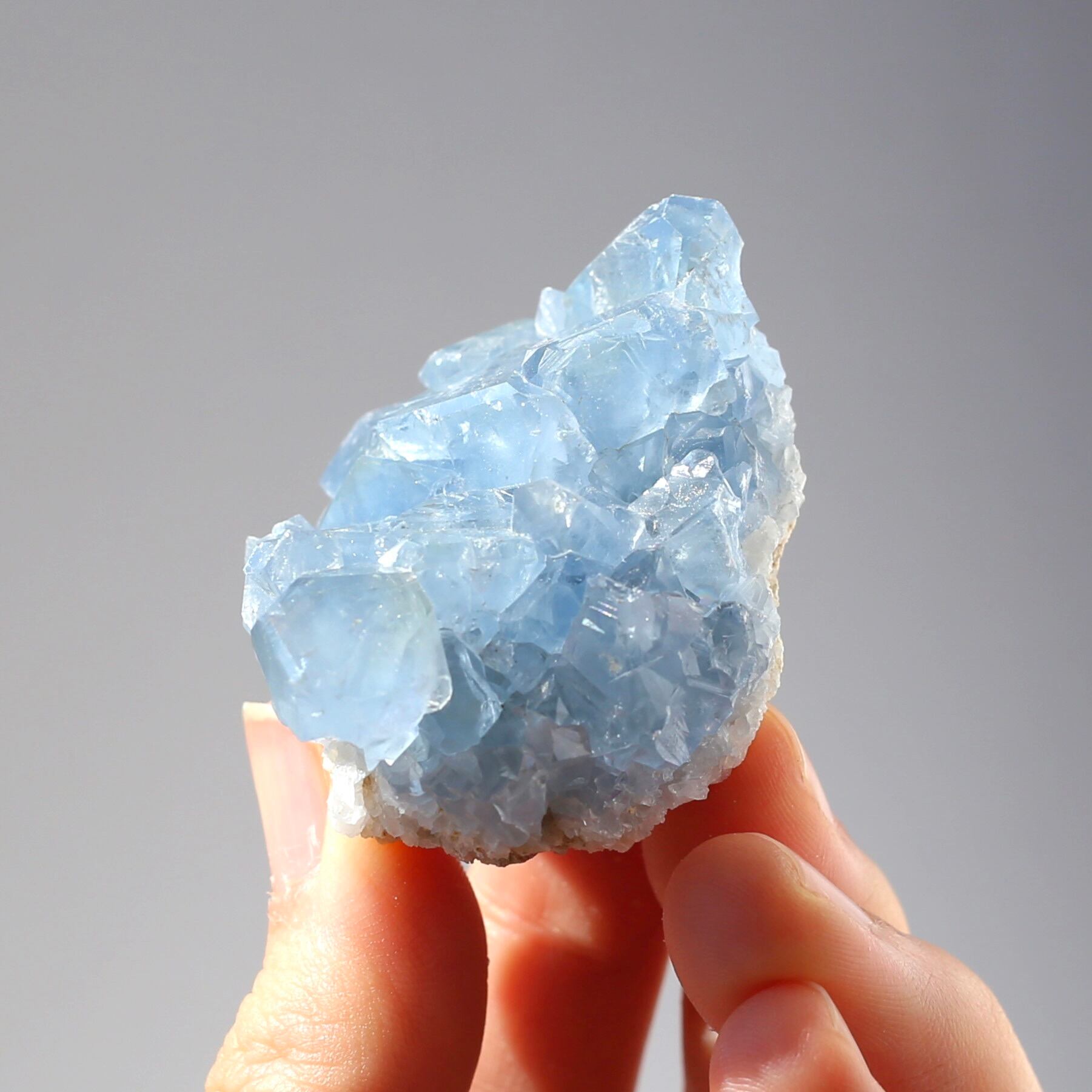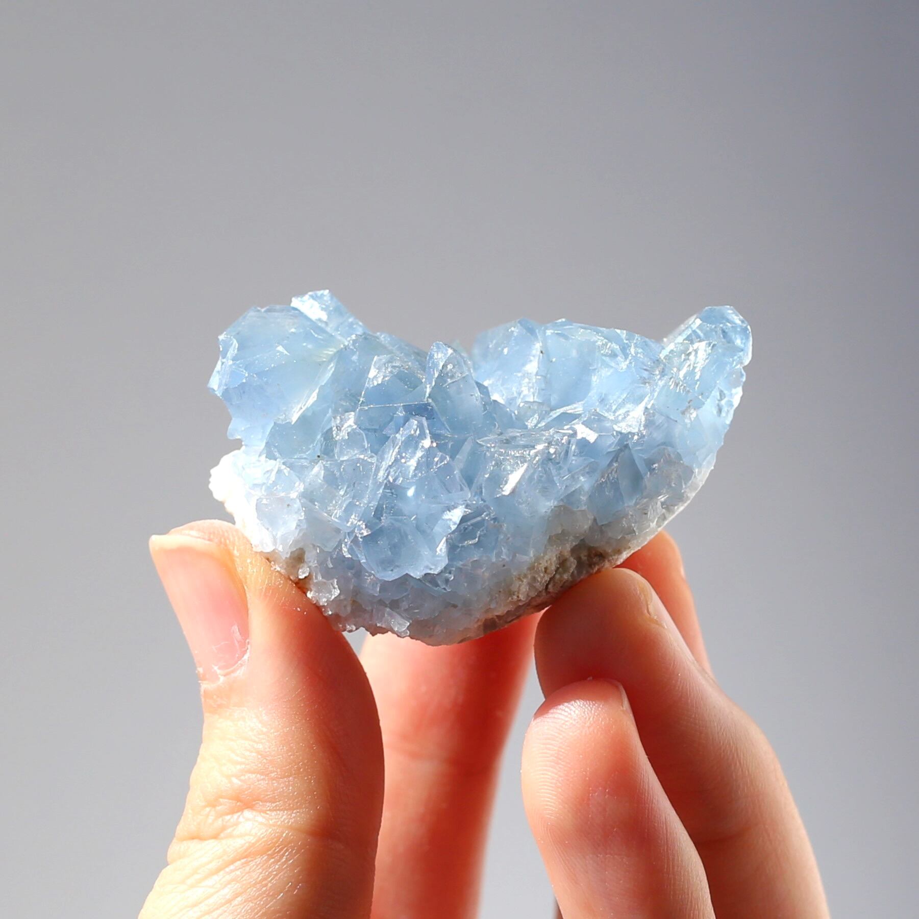ミニサイズなので、仕事のデスクや寝室などにも飾りやすい、セレスタイトクラスターです!