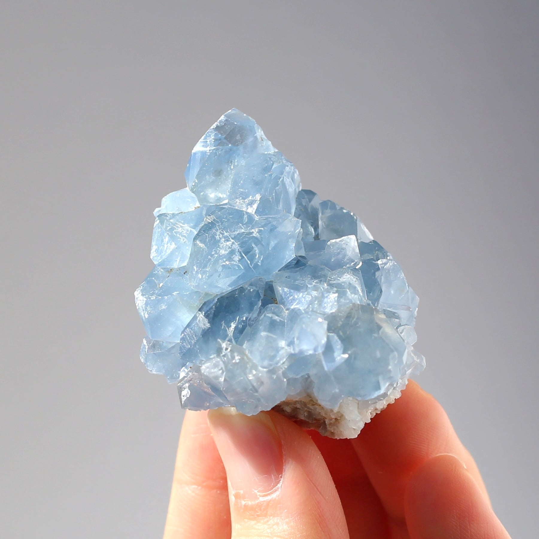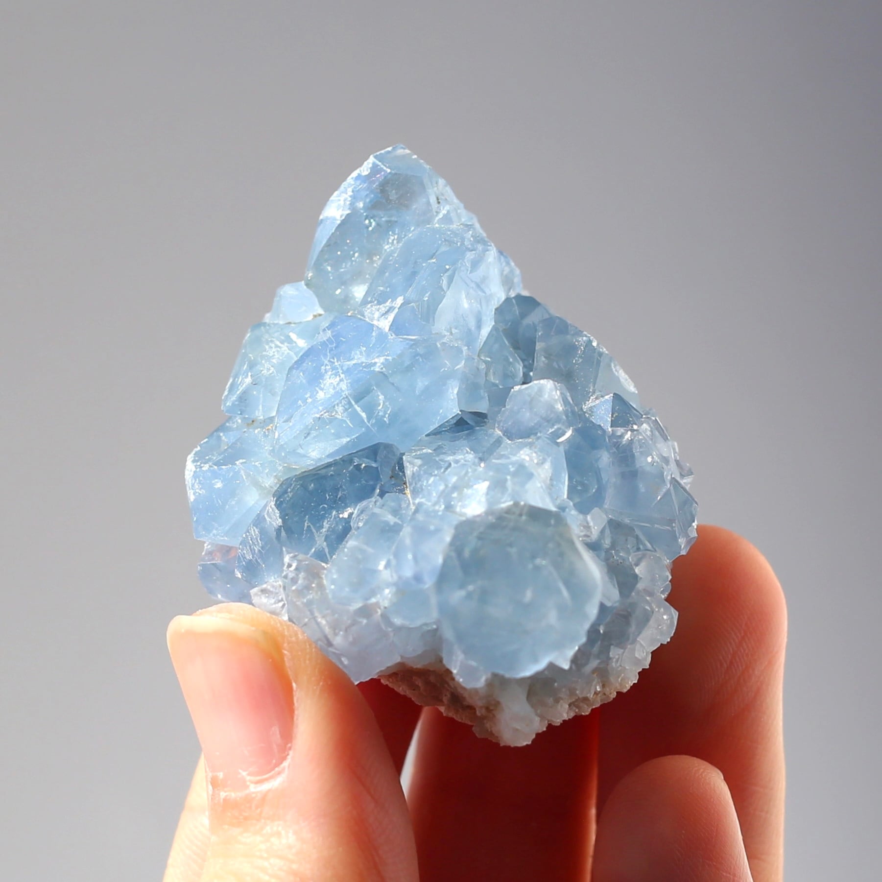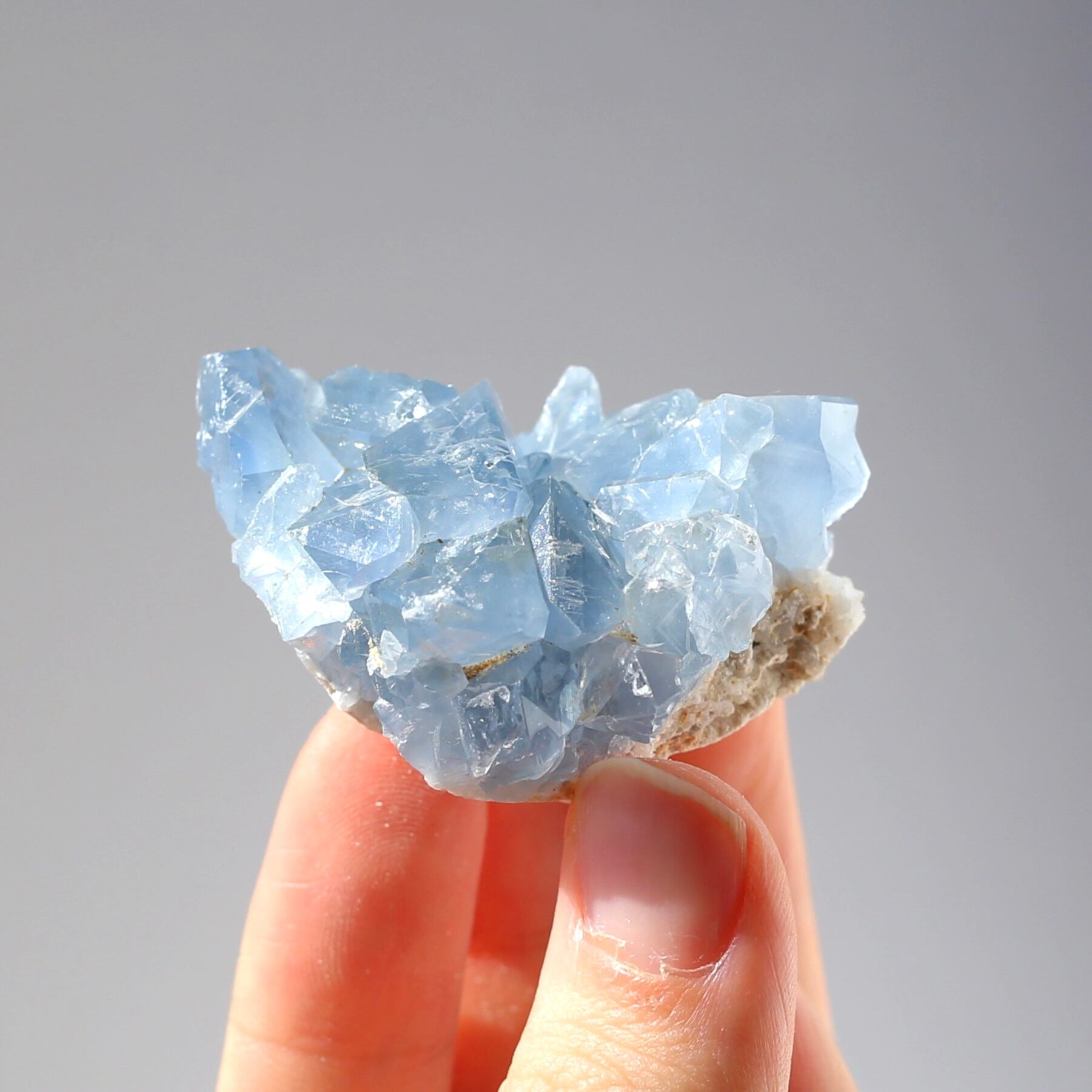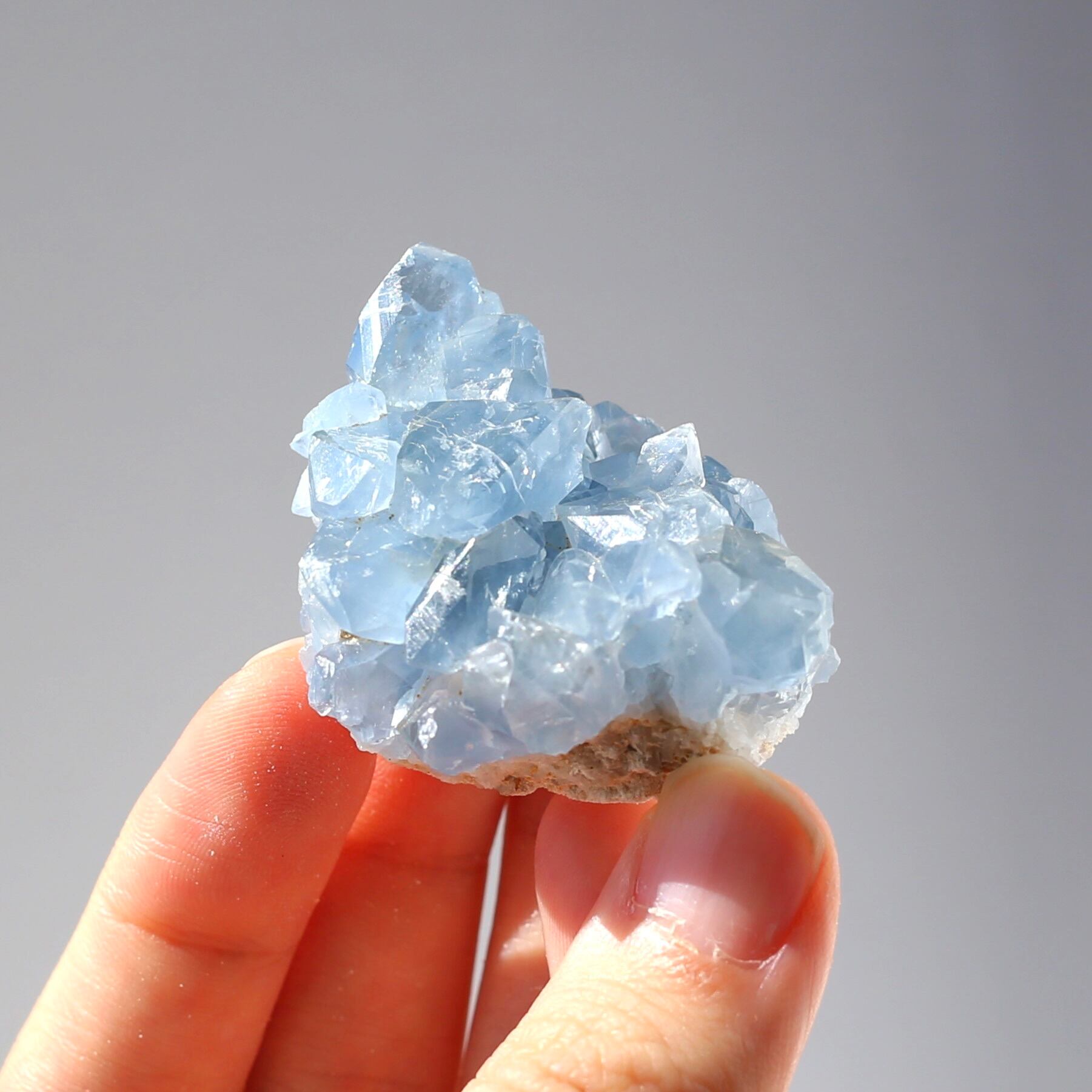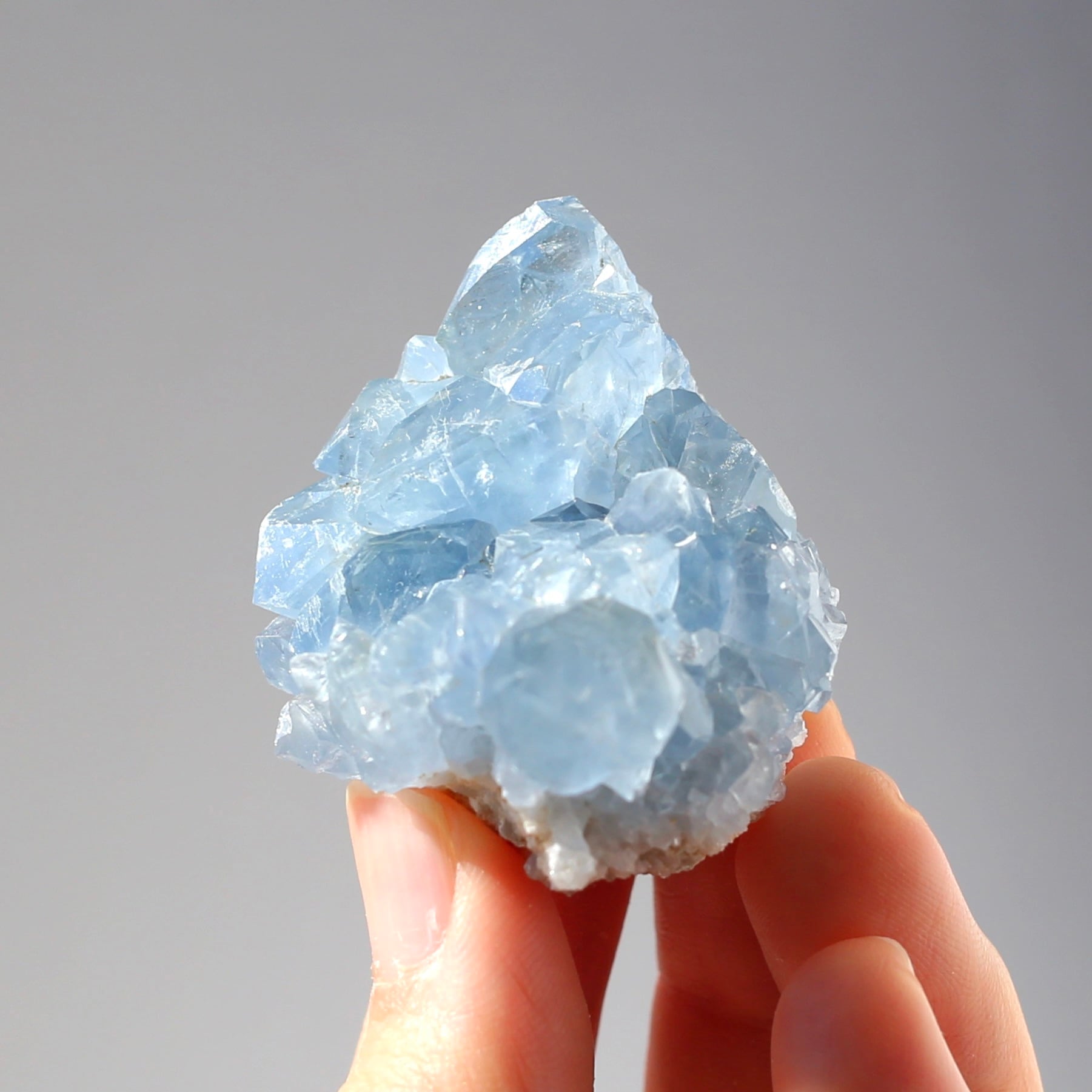 ミニサイズなので、仕事のデスクや寝室などにも飾りやすい、セレスタイトクラスターです!