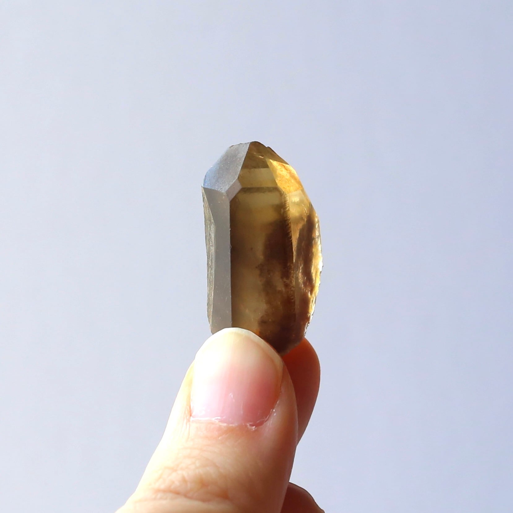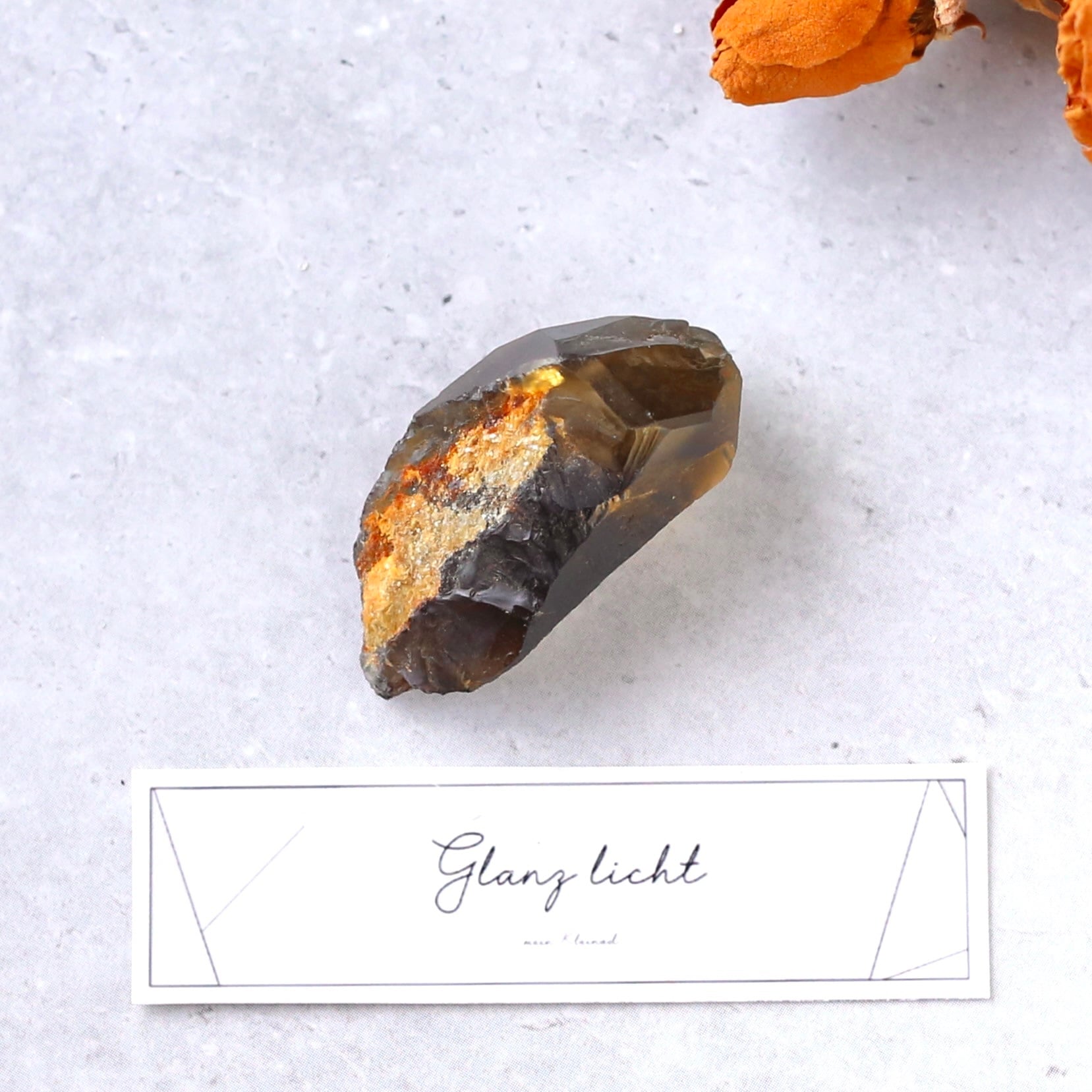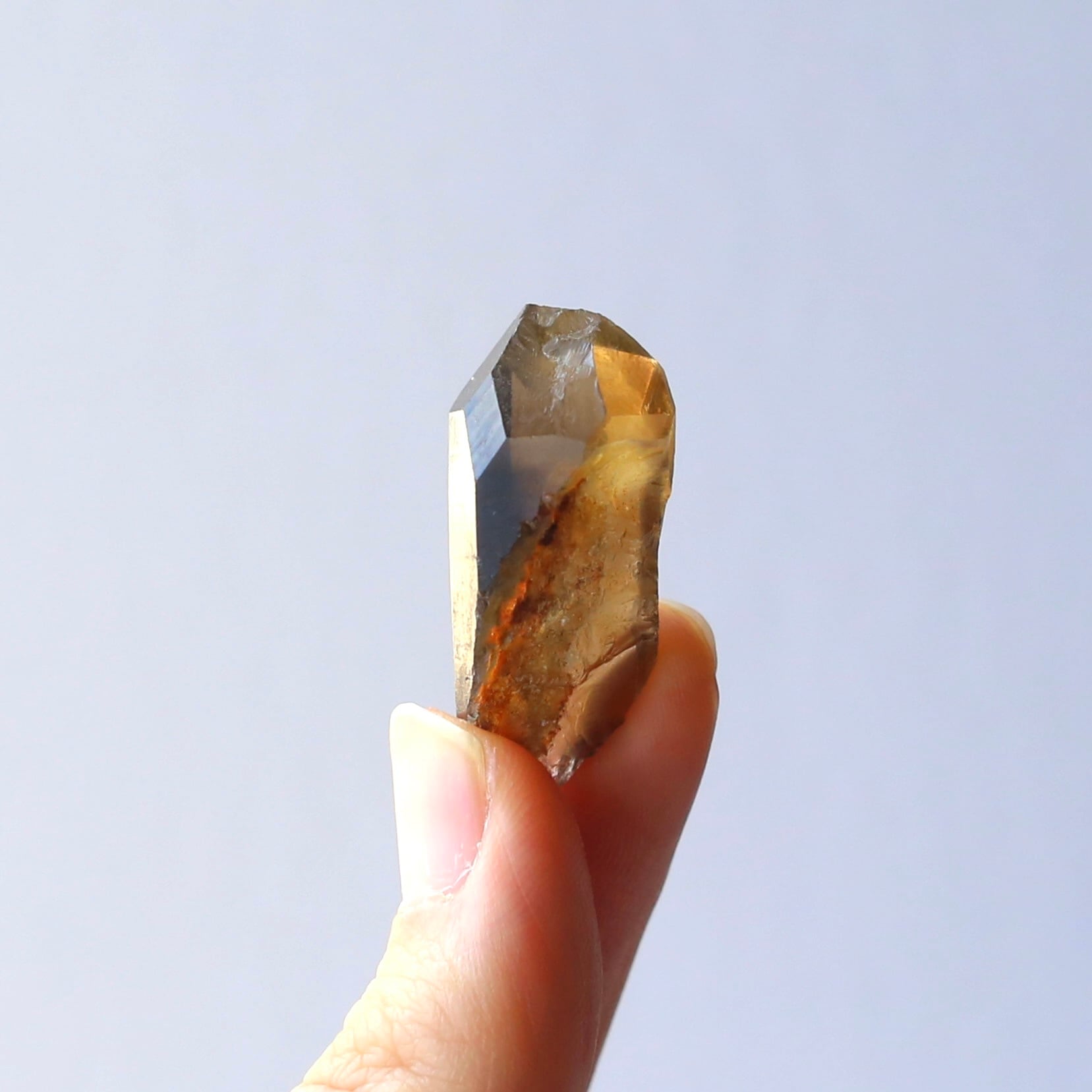 水晶の透明感が残りながらも、水の中に溶けだしたようなブラウンが美しい結晶です