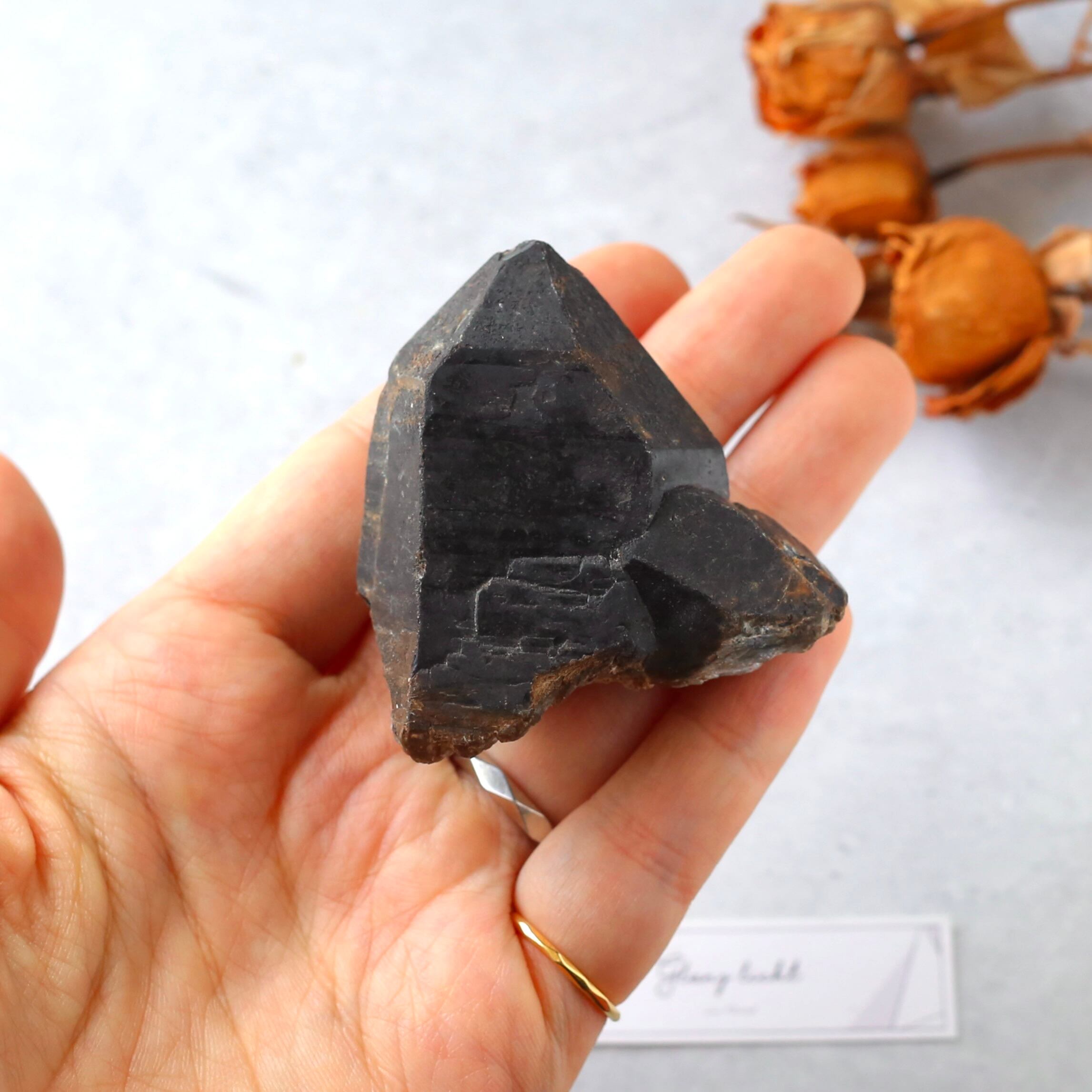 小さめながらも力強いパワーに、完璧を感じさせる漆黒の色合い、モリオンらしい風格を持ったとっても魅力的な原石です!