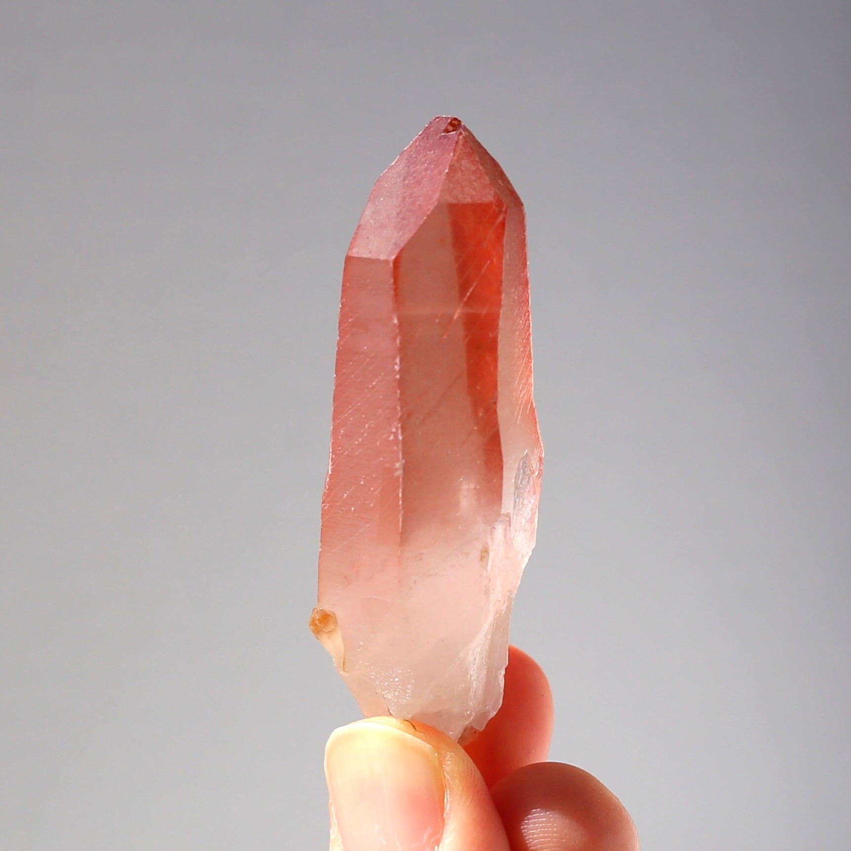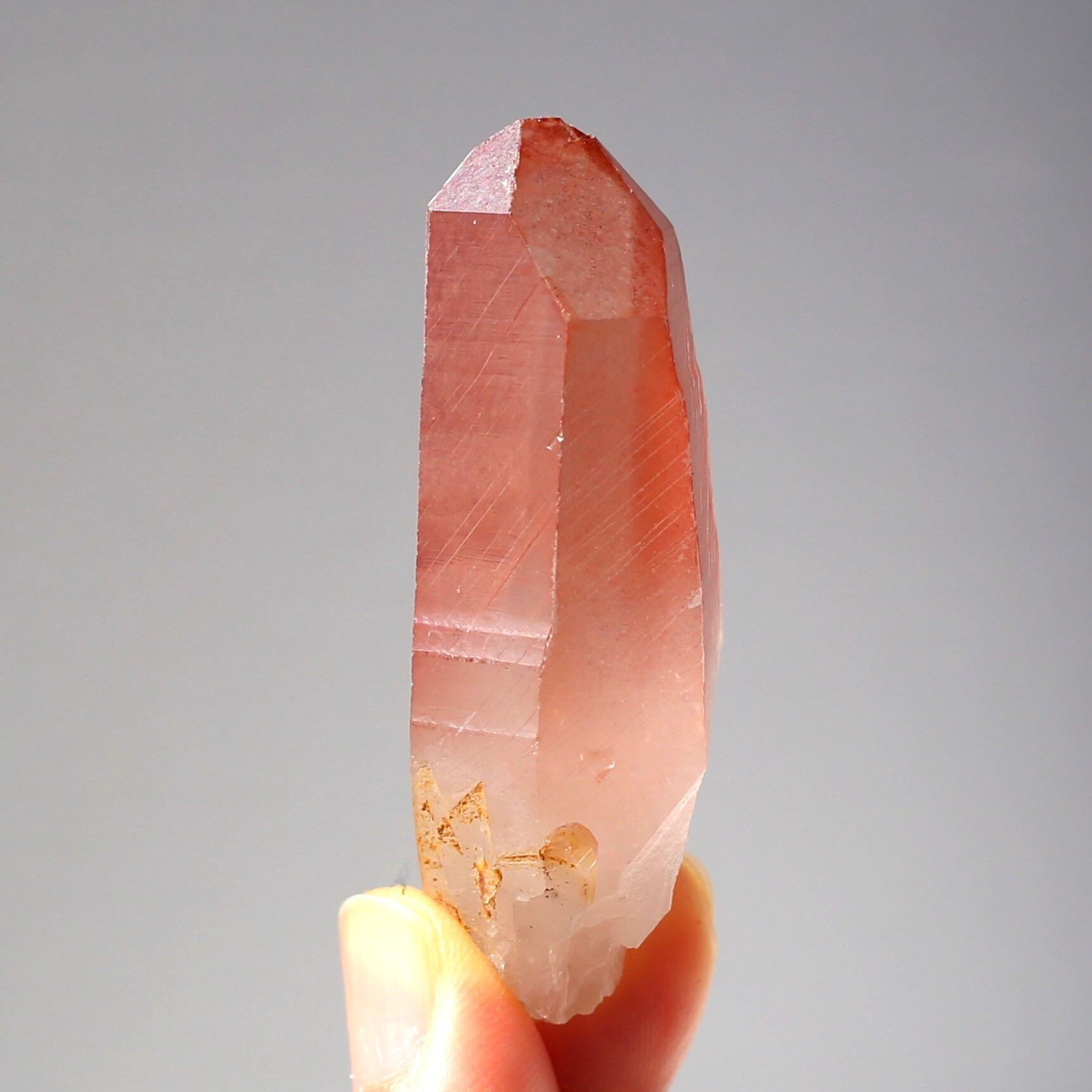 しっかりとしたサイズの結晶に、濃く色付いたチェリー色が綺麗なディープピンクレムリアンシードです