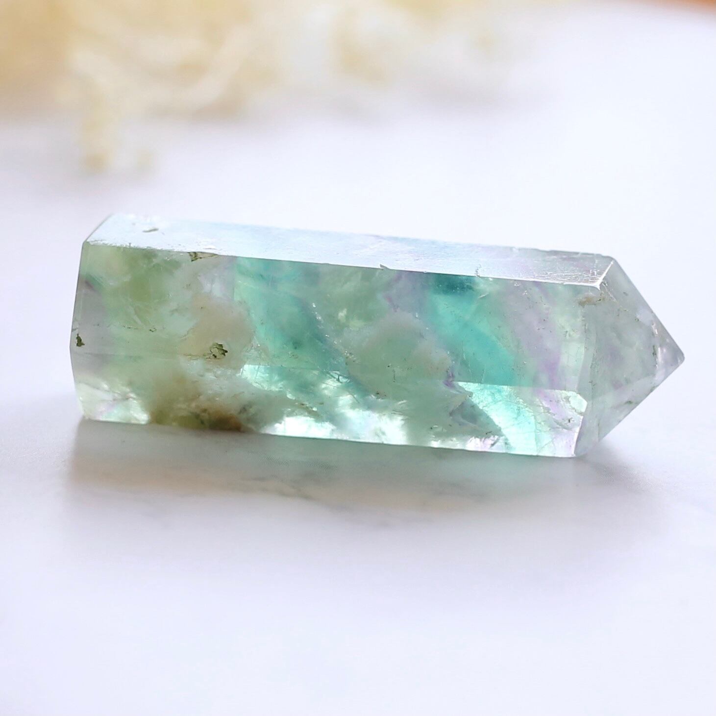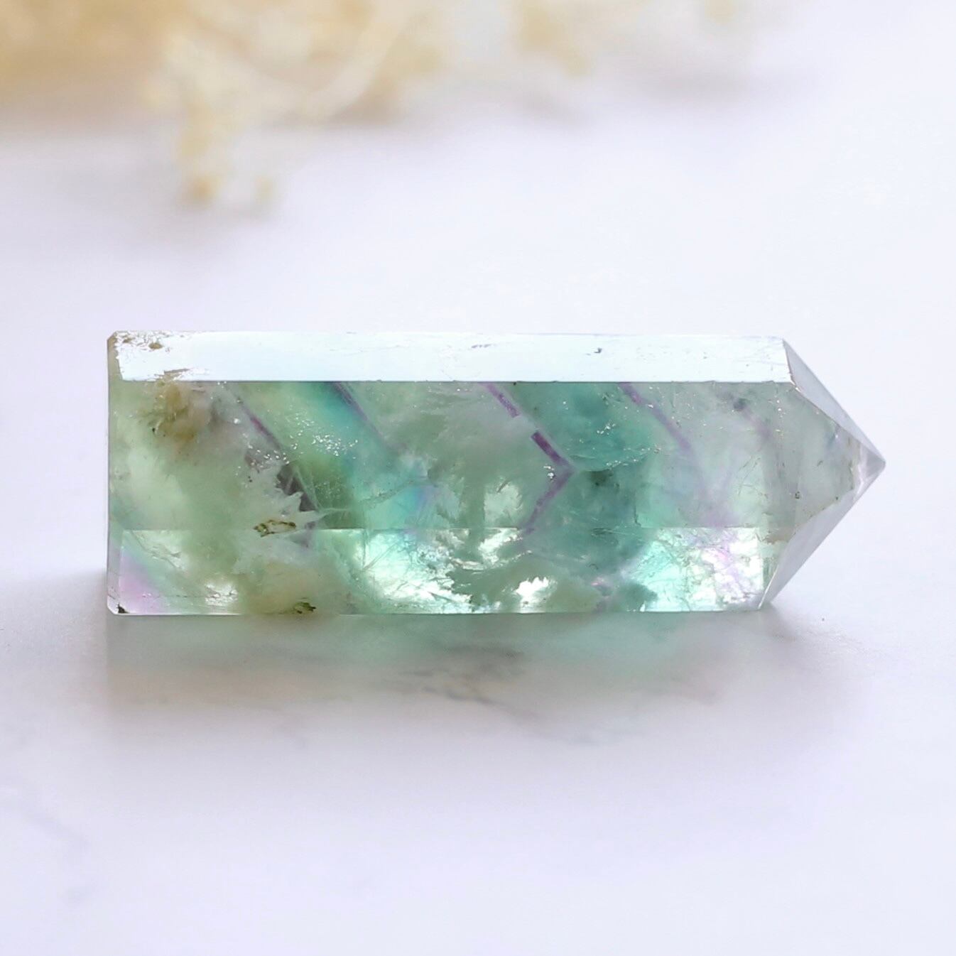 エンジェルフェザーフローライト 六角柱 ポイント 天然石 蛍石 希少 鉱物