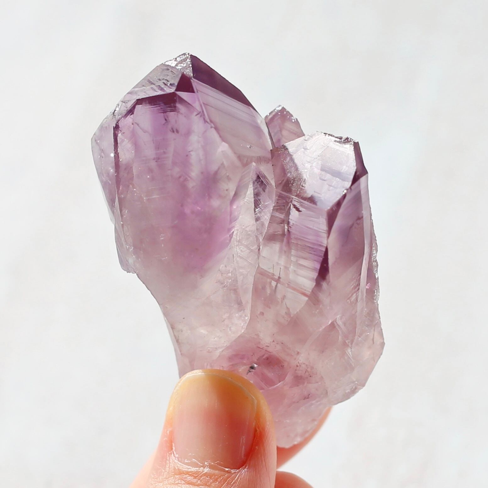 3つの結晶が寄り添う形が可愛いアメジストのポイント原石です♪