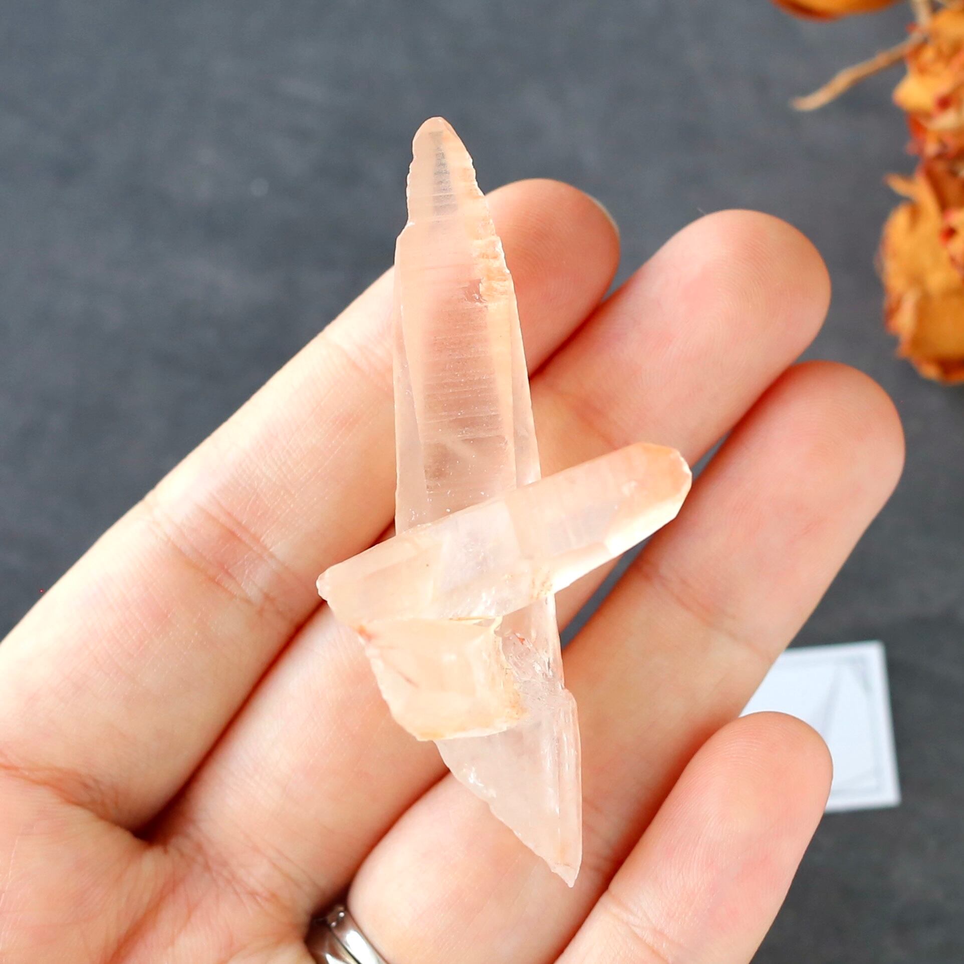 優しい色付きとは裏腹に、大きな結晶の方は先端部分が鋭く、力強さやかっこよさも感じる形にもなっています