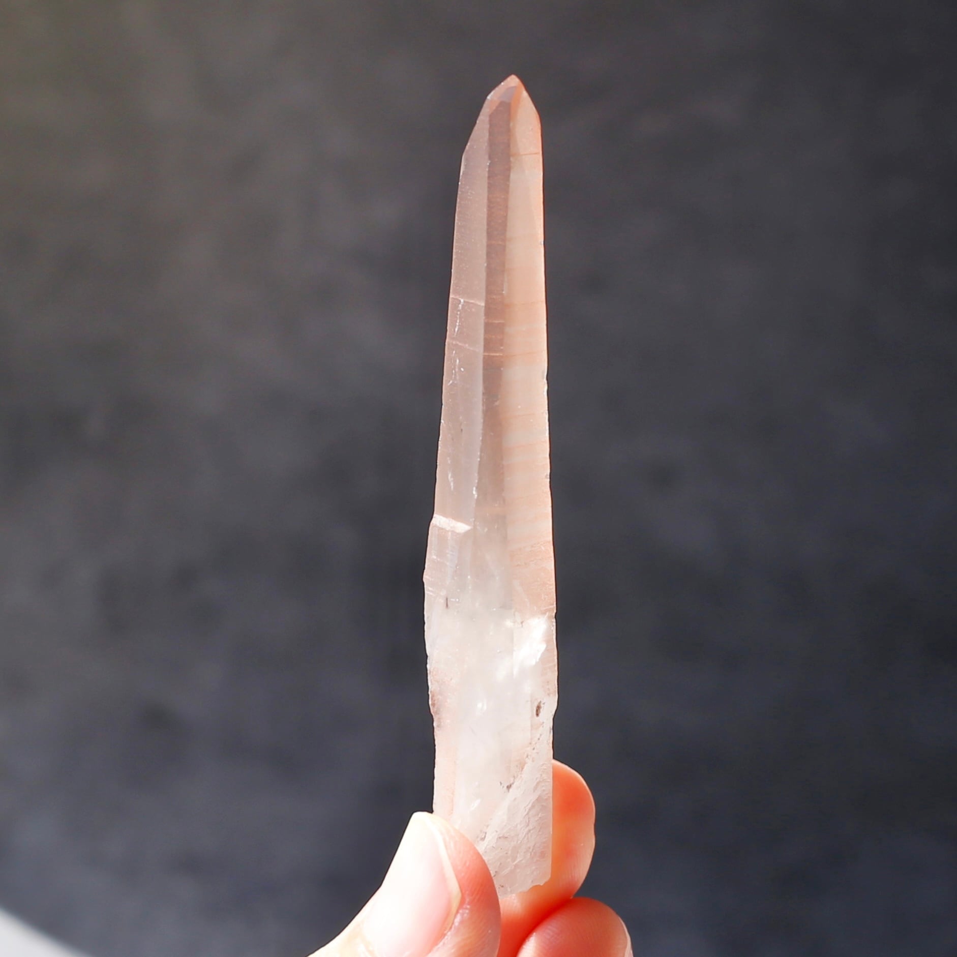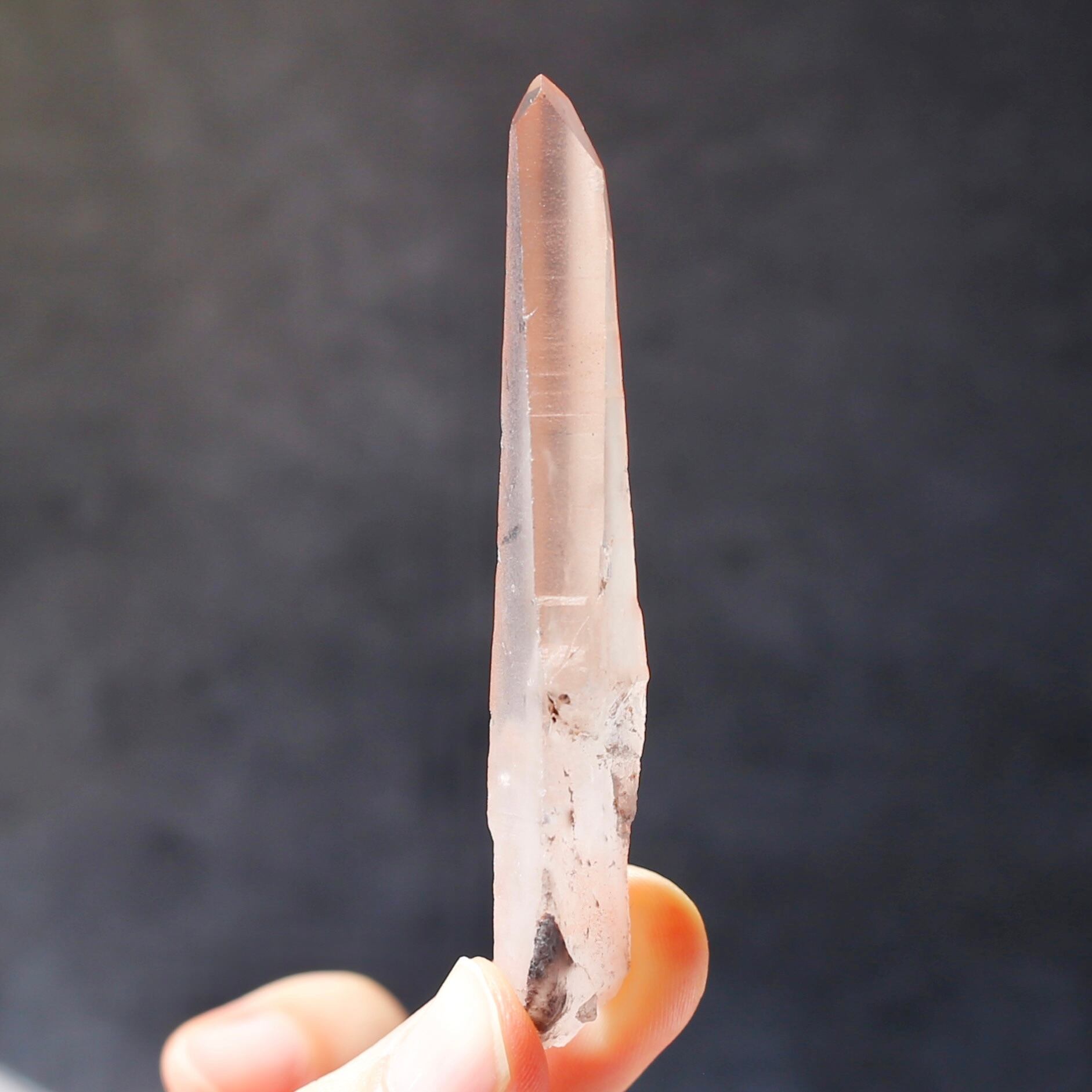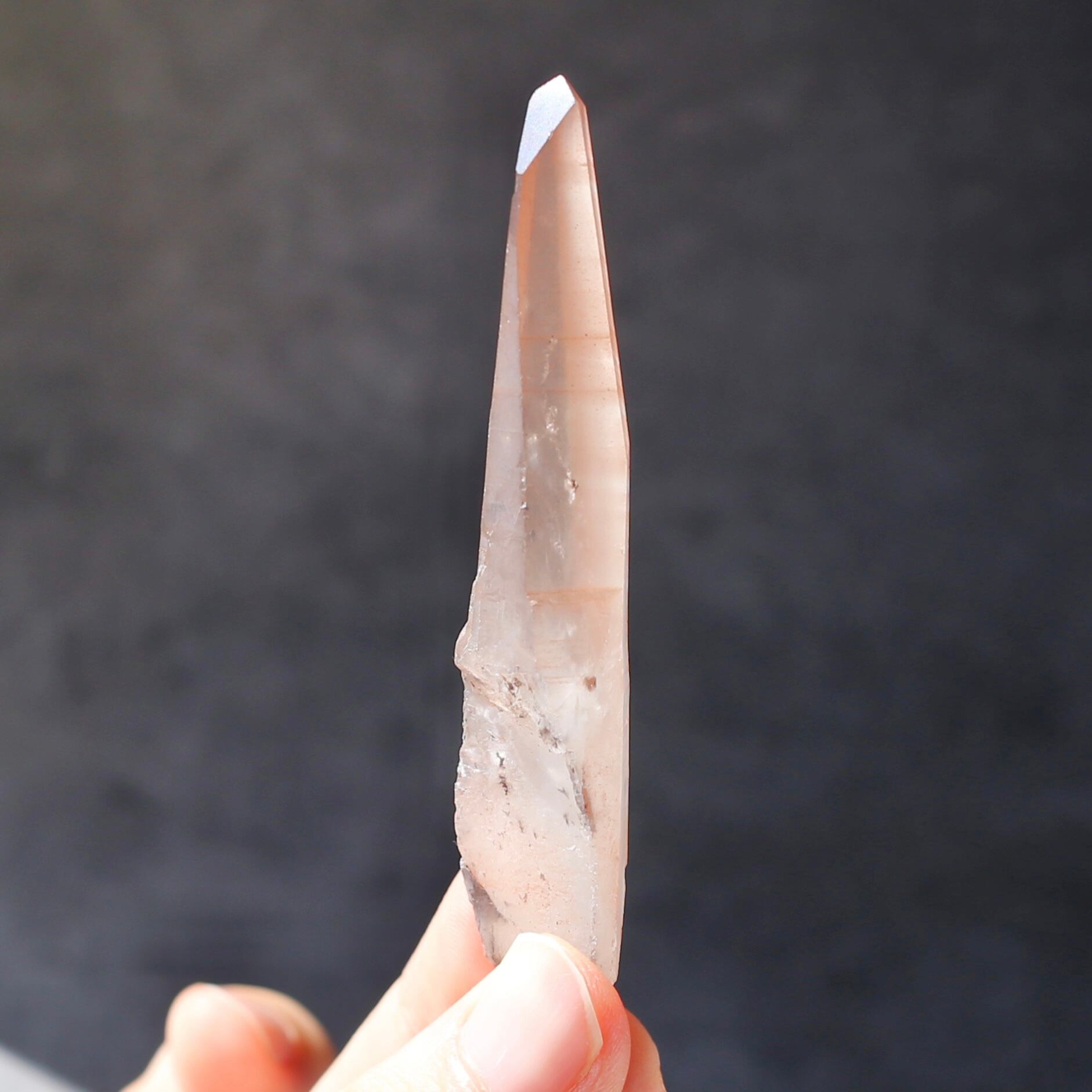 すらりと伸びたレーザー型の結晶が特徴的なピンクレムリアンシードです
