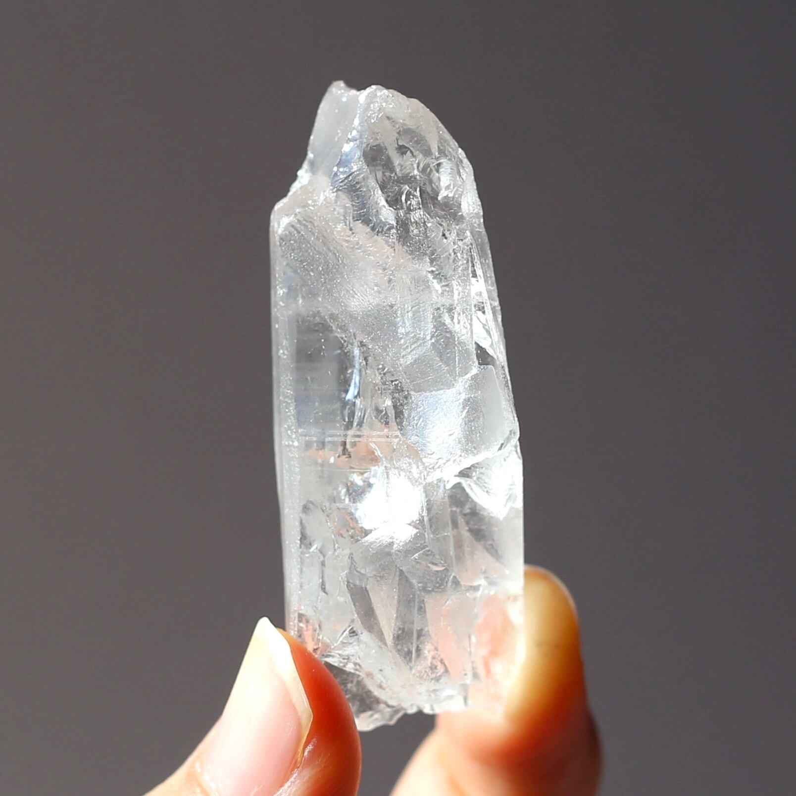 透明度の高い結晶に、力強い剝離痕がたくさん刻まれています